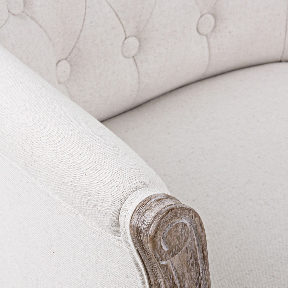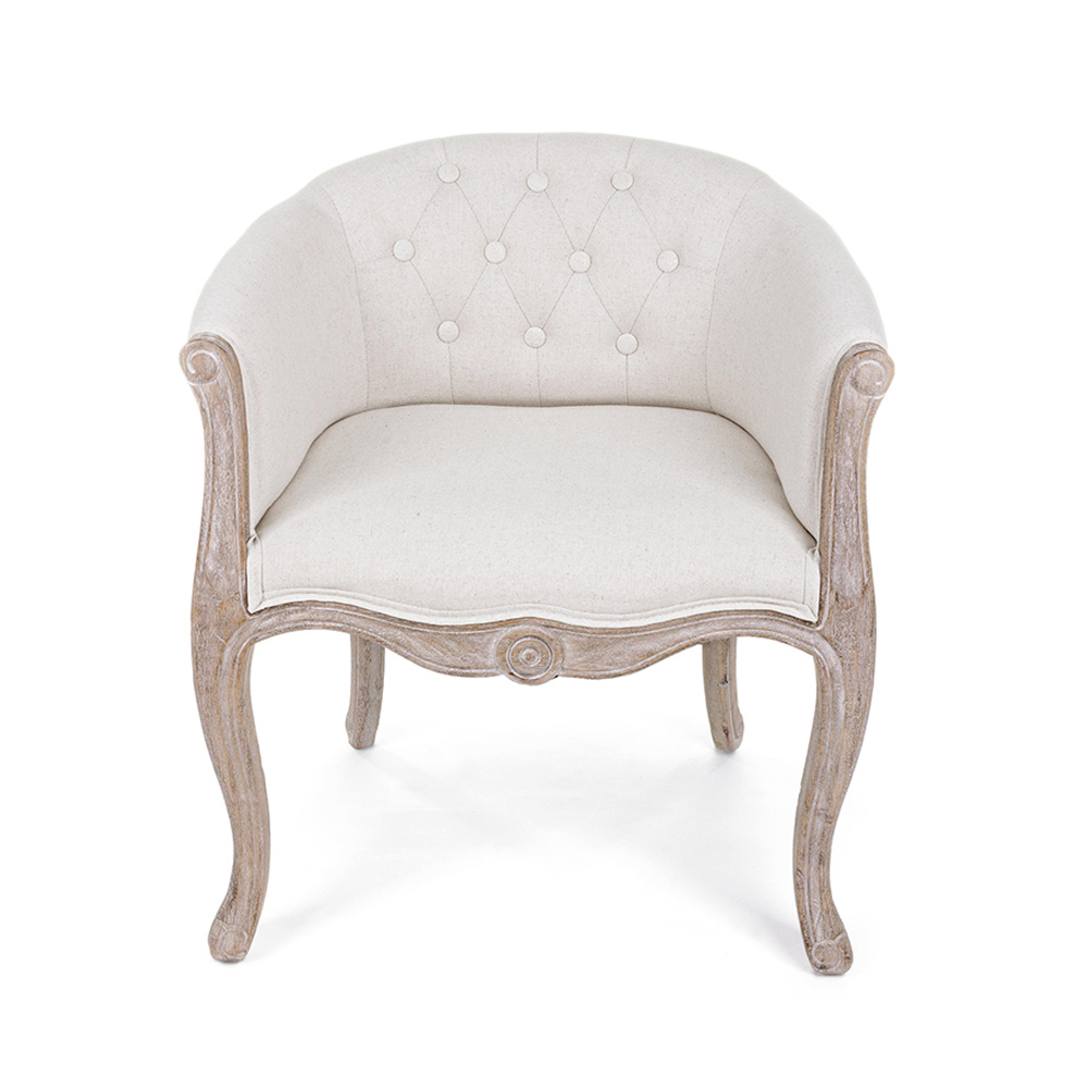 Poltrona de madeira em linho natural e design clássico de algodão - Katen