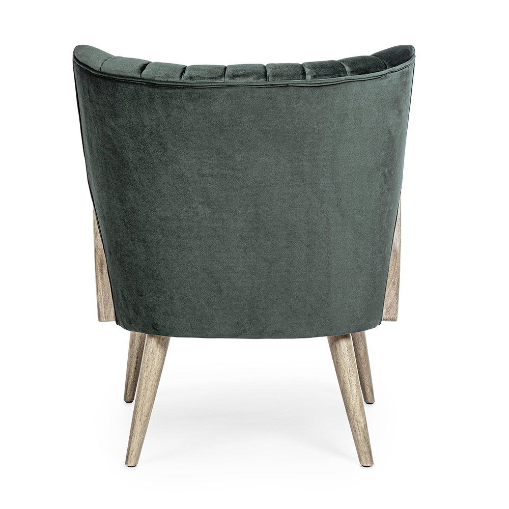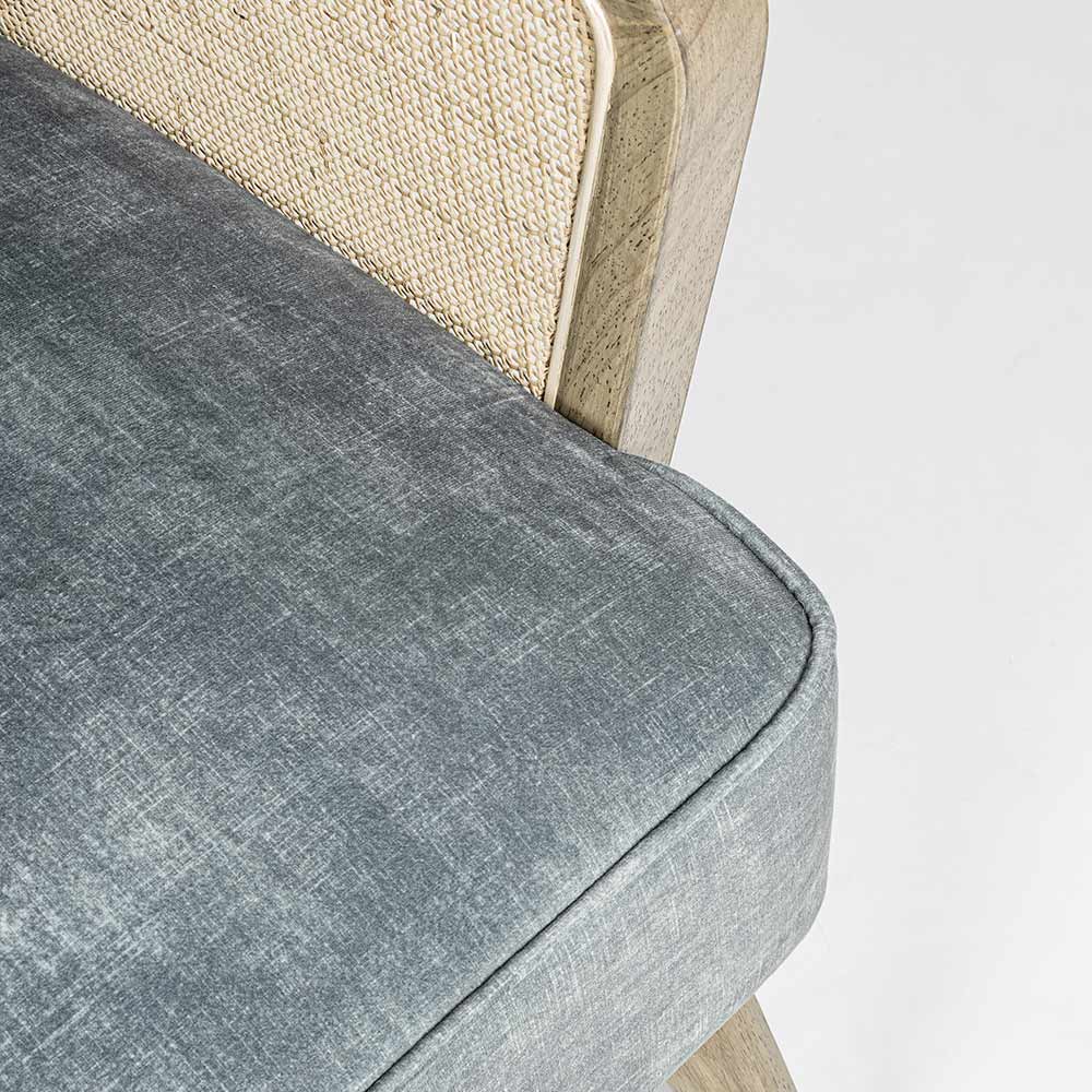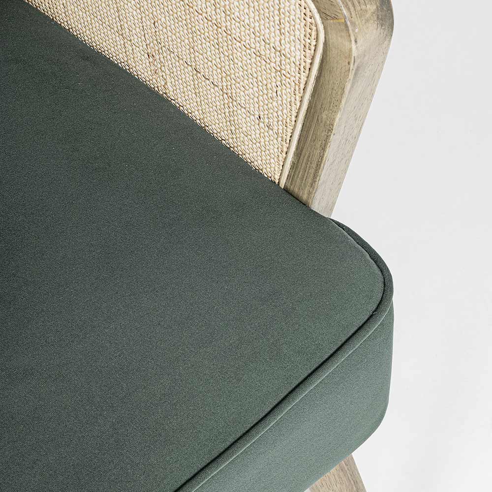 Poltrona de madeira vintage com braços de vime e poliéster - Ludovica