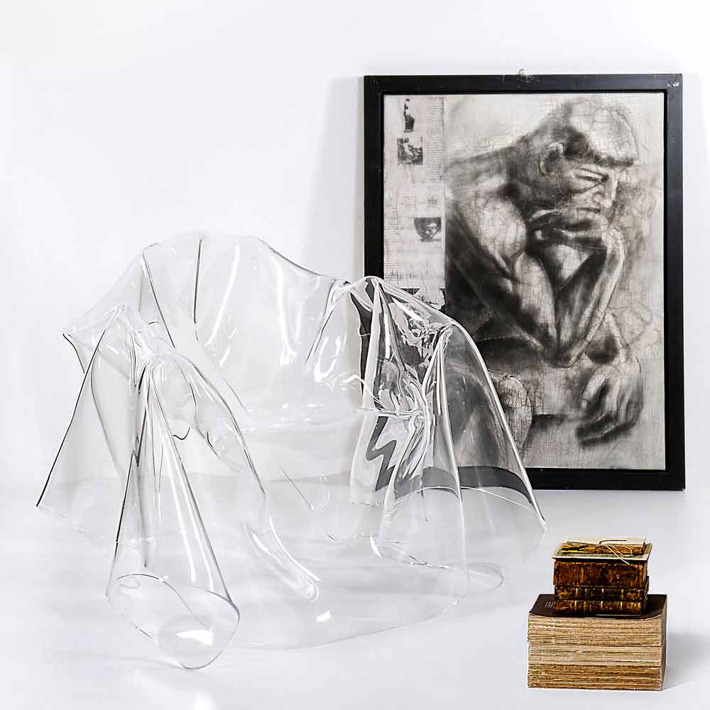 Cada poltrona "Paris" é uma peça única de arte moderna. De uma folha de plexiglass transparente de PMMA 100% pura, revestida à mão, vem uma poltrona única. Auto-sustentável, a poltrona pode acomodar 1 lugares.