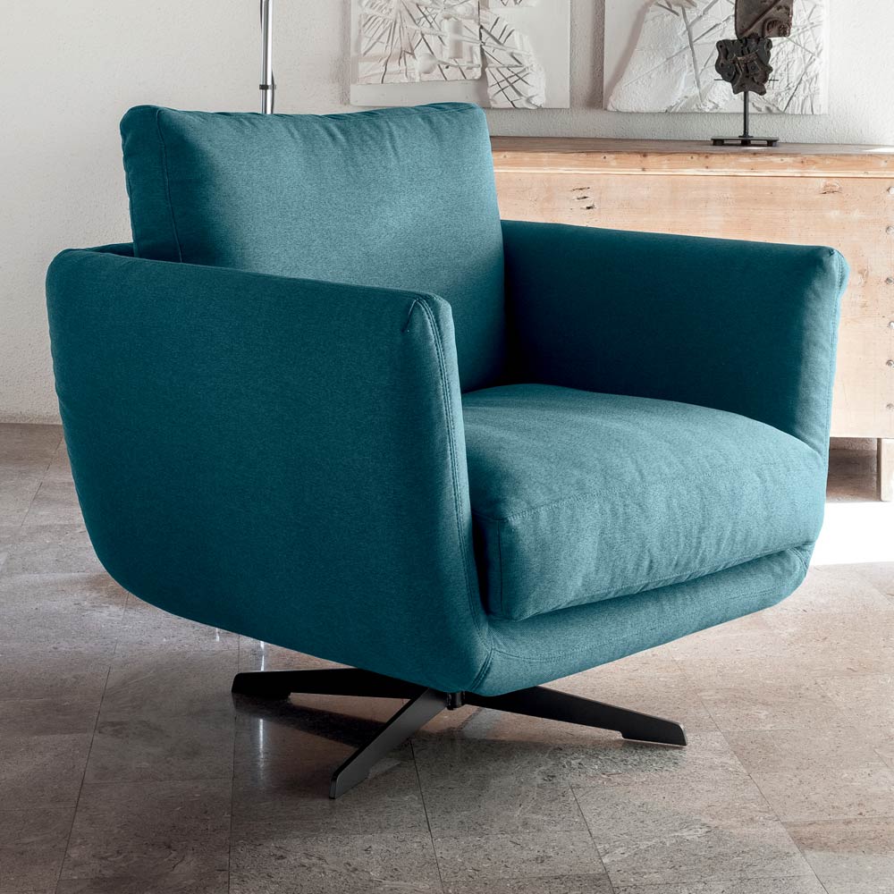 metal pintado de cor antracite. A poltrona representa uma fusão harmoniosa de conforto e estilo moderno. O design elegante com linhas suaves e arredondadas evoca uma sensação de aconchego, enquanto a estrutura robusta garante durabilidade ao longo do tempo. O estofamento de tecido de alta qualidade, juntamente com as almofadas grandes e confortáveis, promete uma experiência de assento relaxante. Os pés finos e geométricos adicionam um toque sofisticado, tornando a poltrona uma fascinante peça de design. Esta poltrona é ideal para quem procura uma solução de mobiliário que combine estética moderna e conforto impecável.