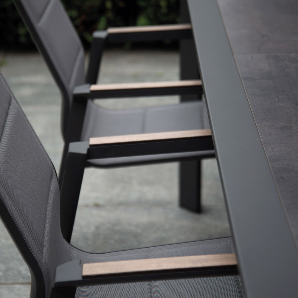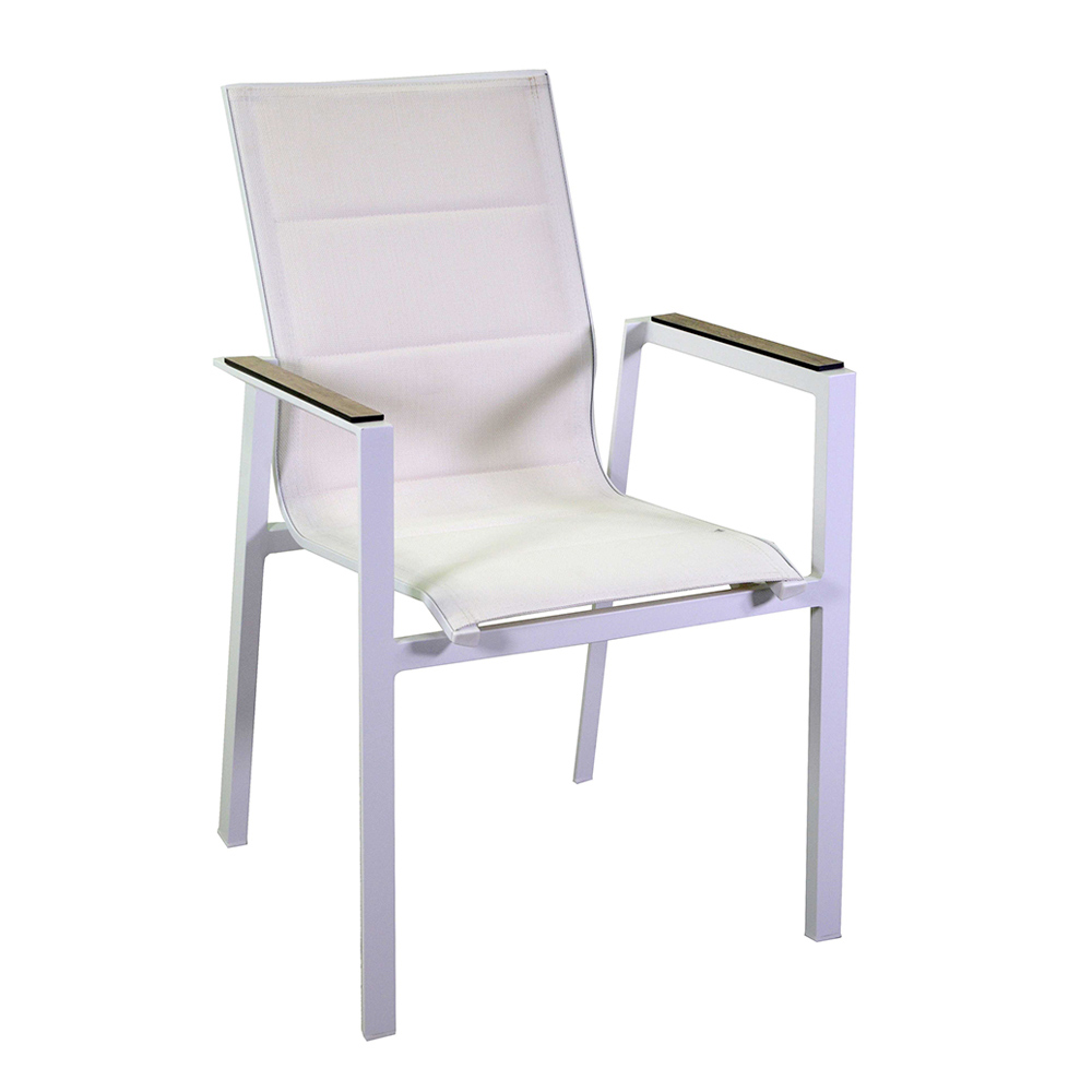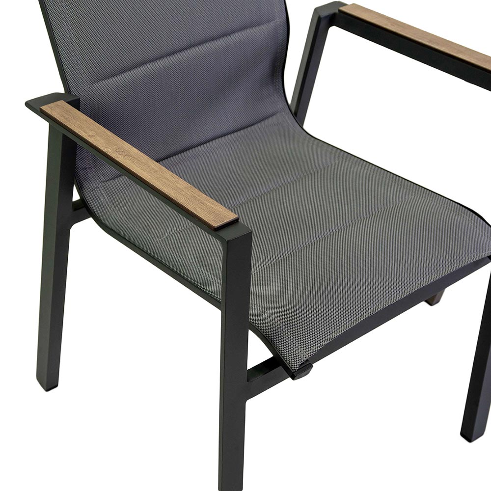 Esta poltrona de alumínio com estofamento textilene é ideal para quem procura conforto e estilo em seu espaço ao ar livre. A estrutura de alumínio pintado oferece um design limpo e moderno que combina perfeitamente com qualquer decoração. Os apoios de braços , enriquecidos com inserções de HPL, dão um toque de elegância e são extremamente práticos para apoio. O Textilene, conhecido pela sua resistência e facilidade de manutenção, garante um assento confortável e duradouro, ideal para desfrutar de horas de relaxamento ao ar livre.