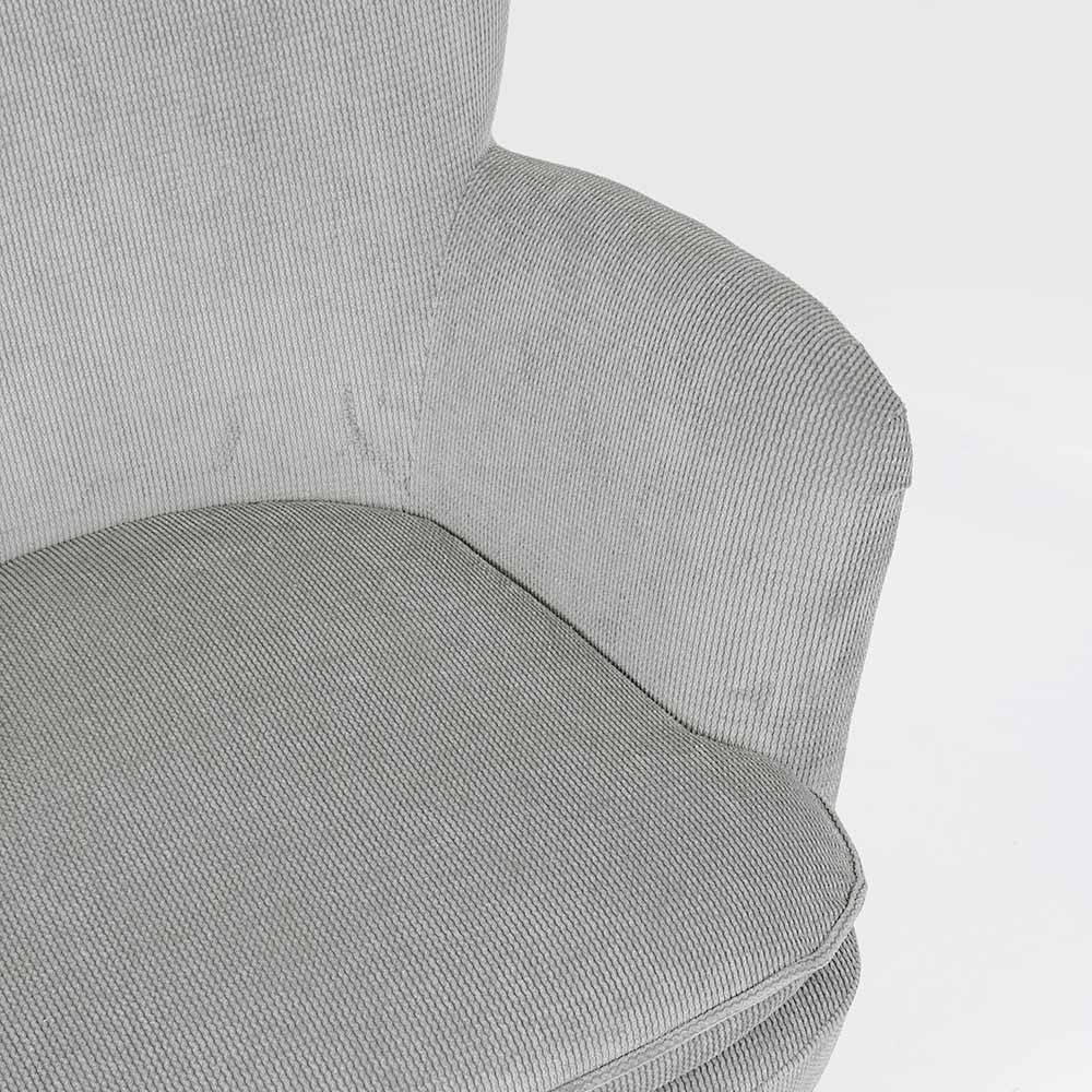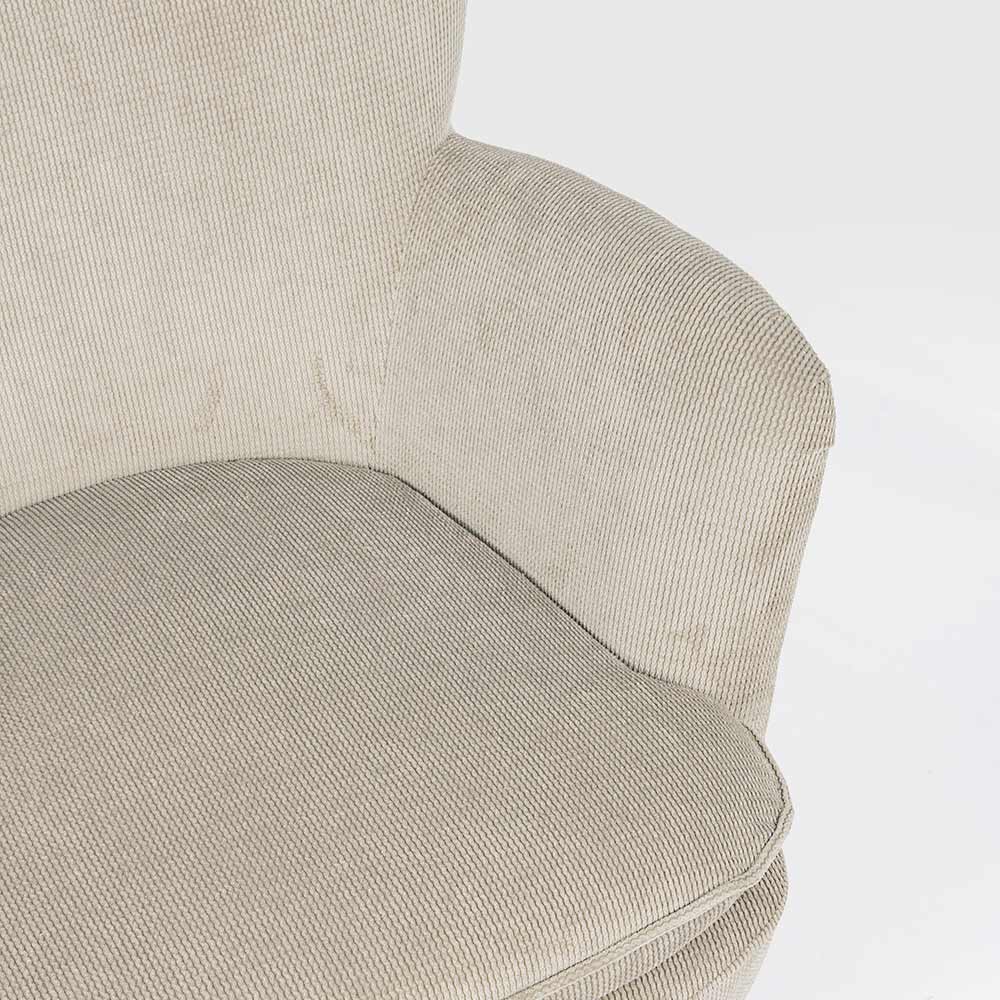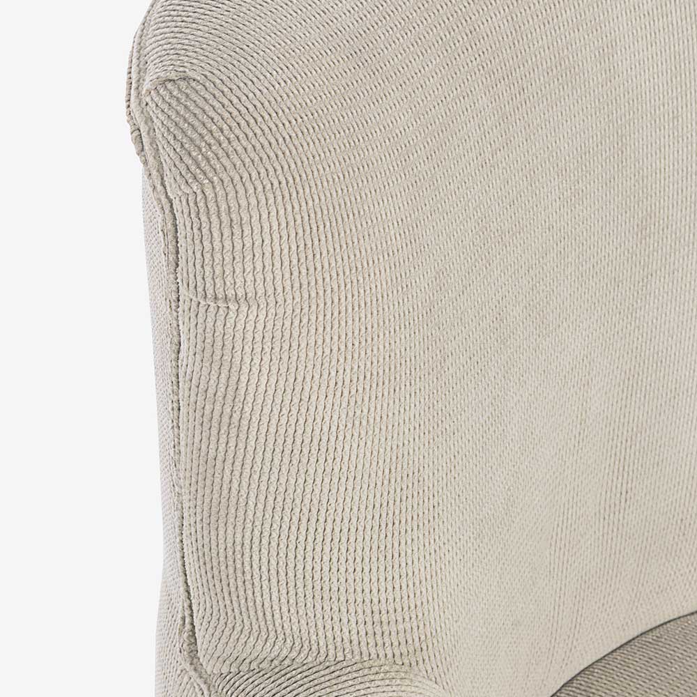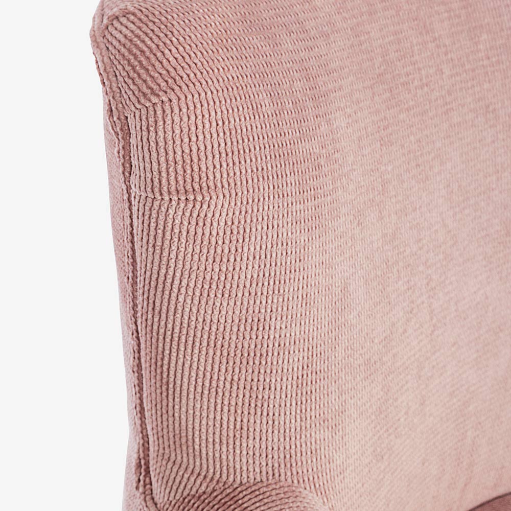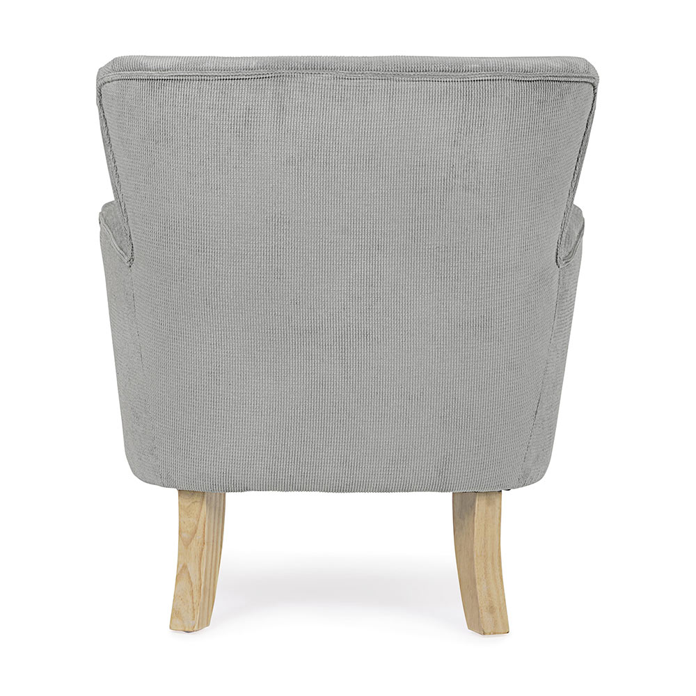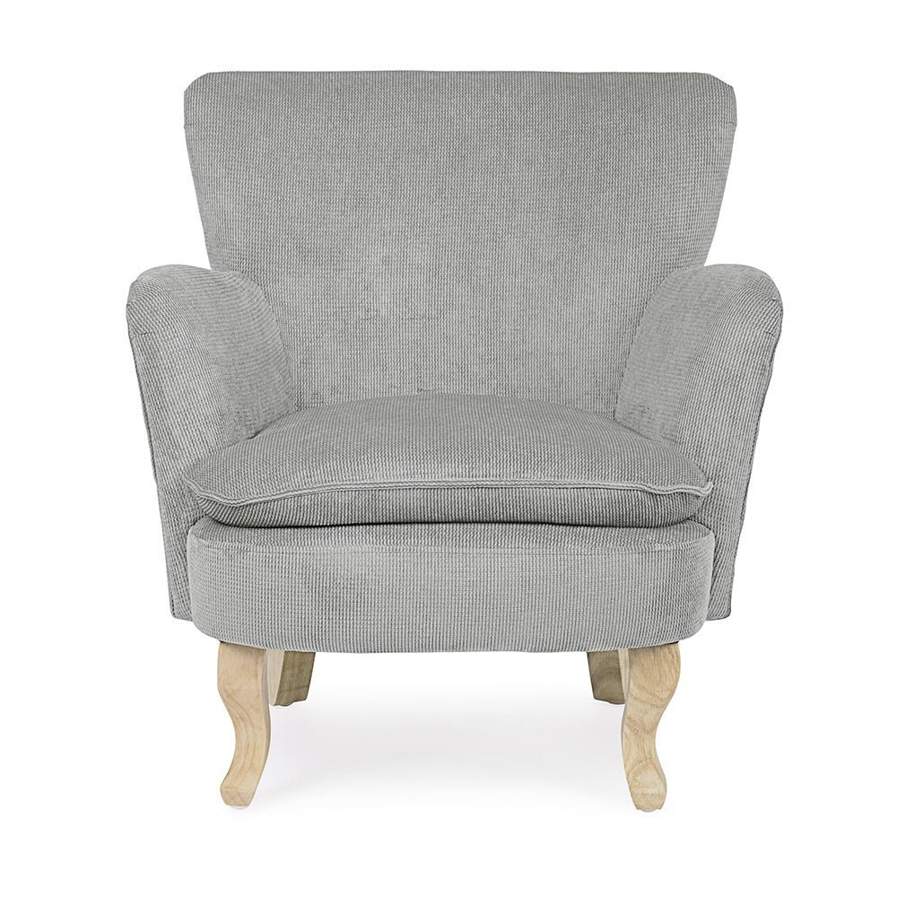 Poltrona em pinho e borracha e assento estofado com efeito veludo cotelê em 4 acabamentos.