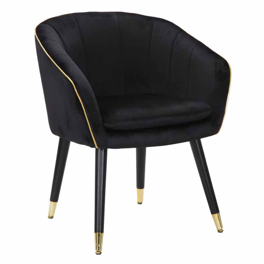 Poltrona de design moderno em madeira com assento estofado em tecido.