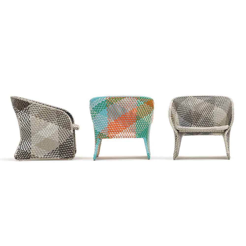 fibra sintética de cor diferente, que criam cenários cromáticos dinâmicos. Seus volumes são projetados para garantir estabilidade máxima e excelente suporte para as costas e os braços.