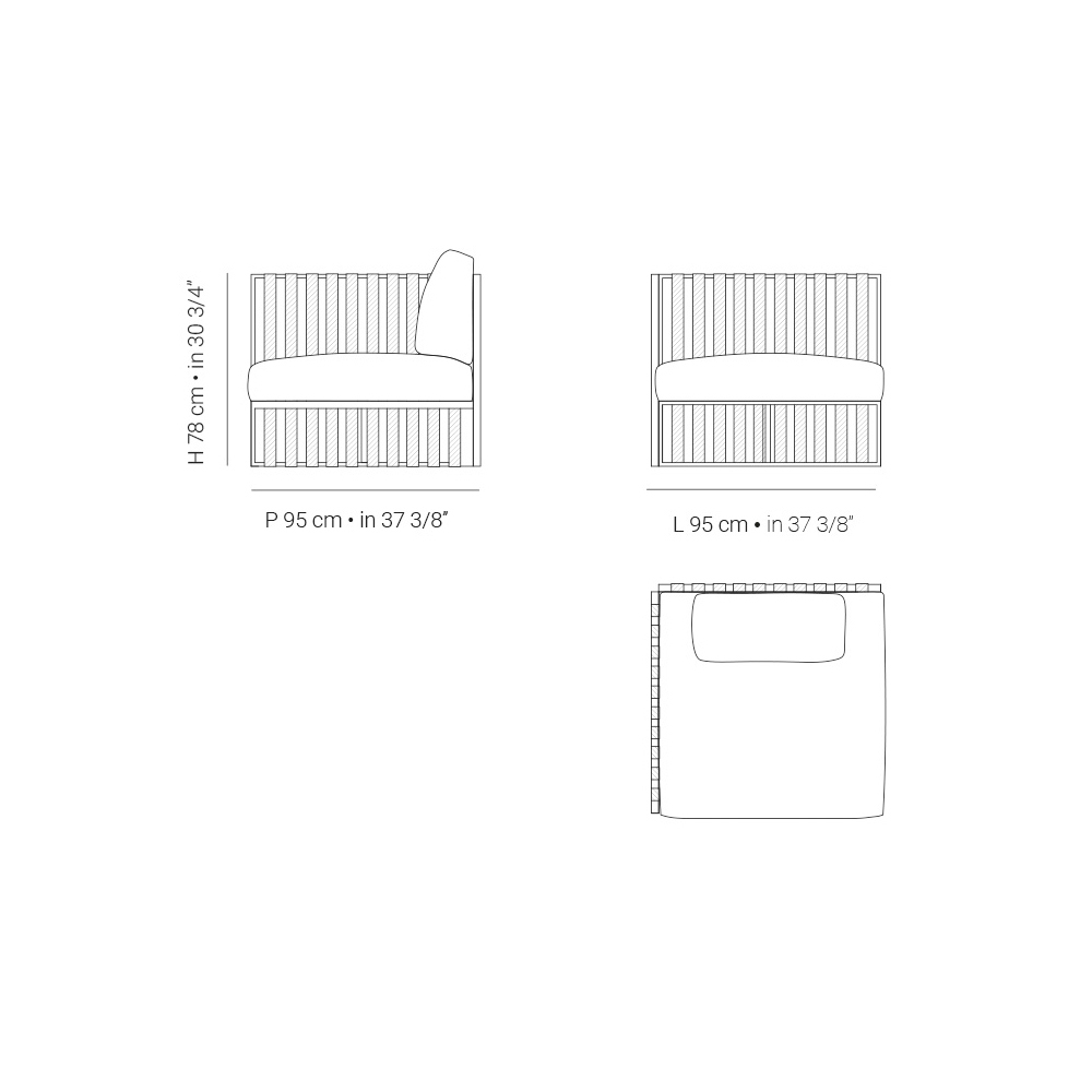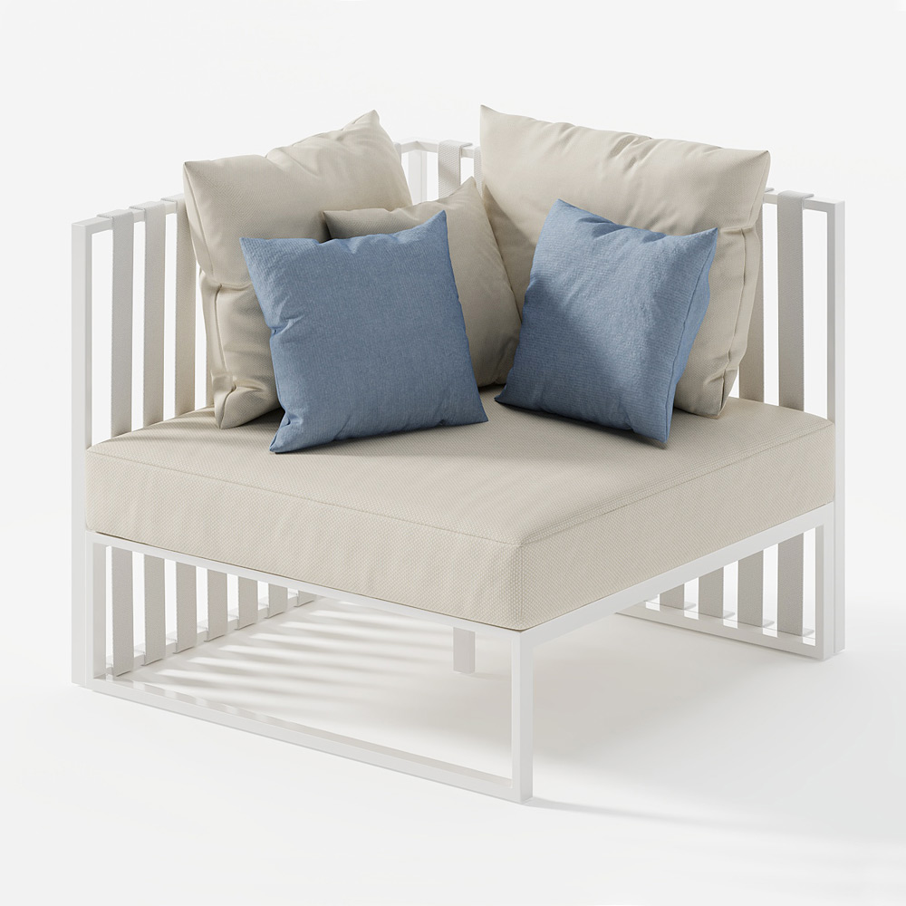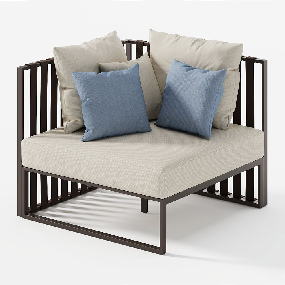 Poltrona exterior de canto direito em alumínio e alças com almofadas acolchoadas Made in Italy