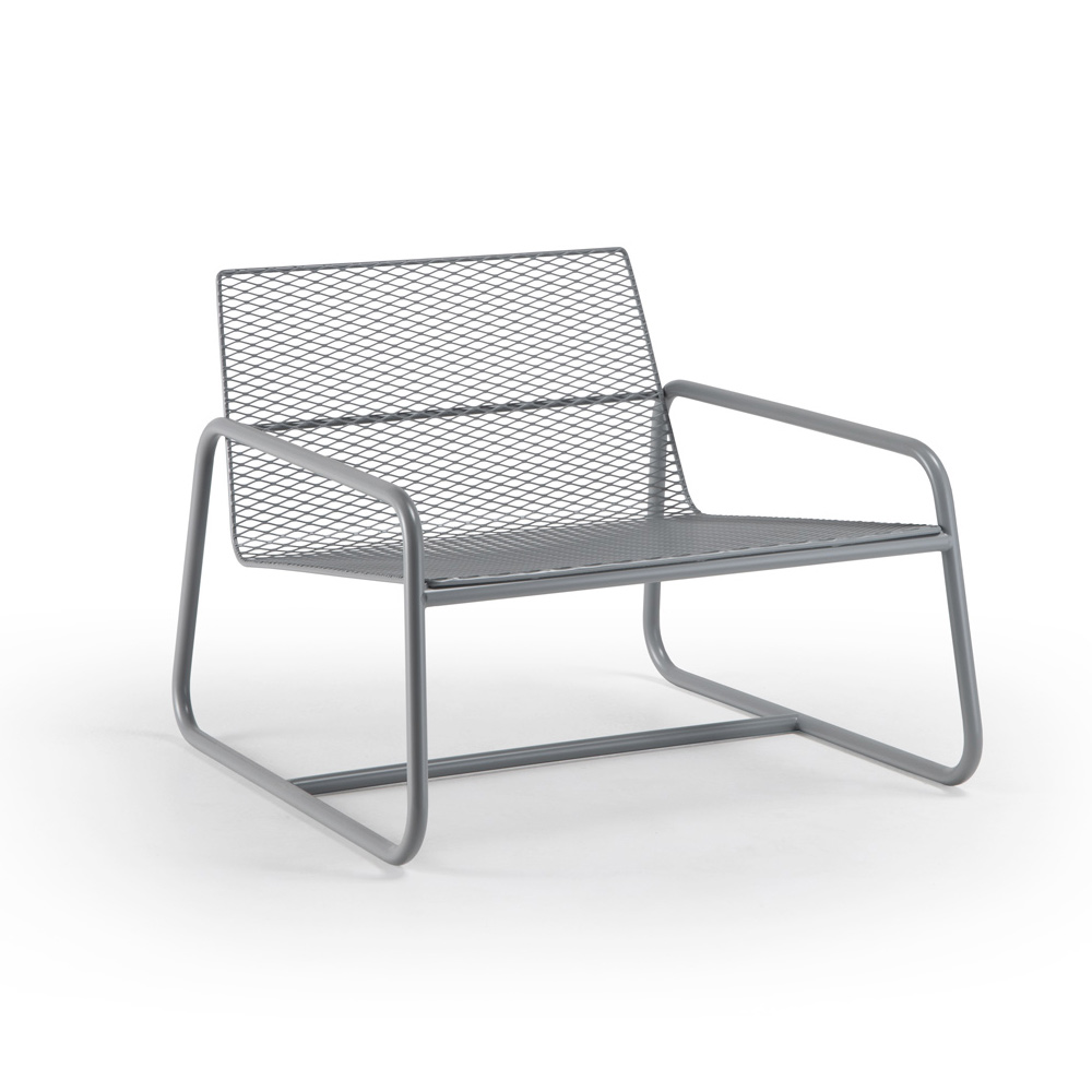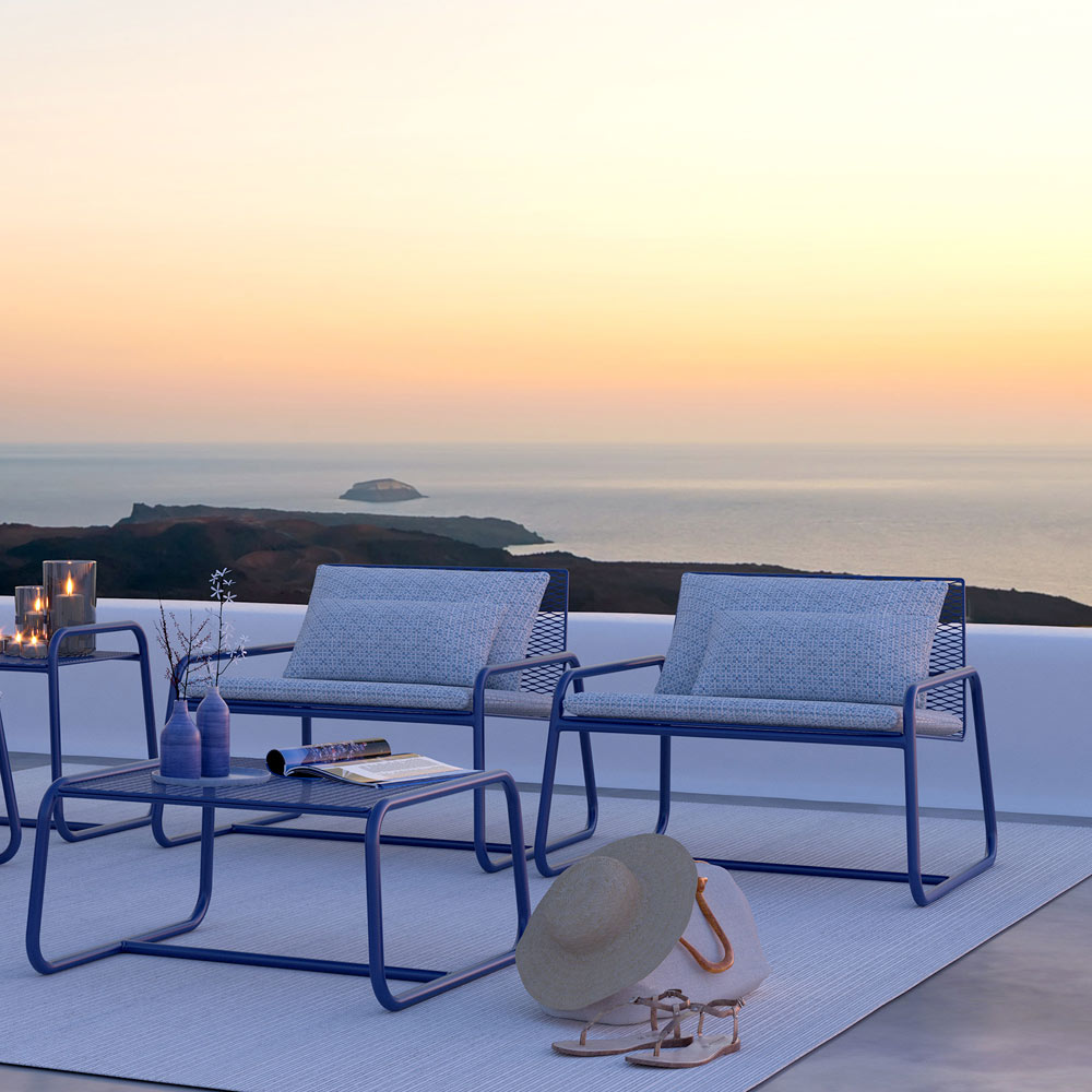 Poltrona de exterior em metal com almofadas de tecido coordenadas, de alta qualidade made in Italy.