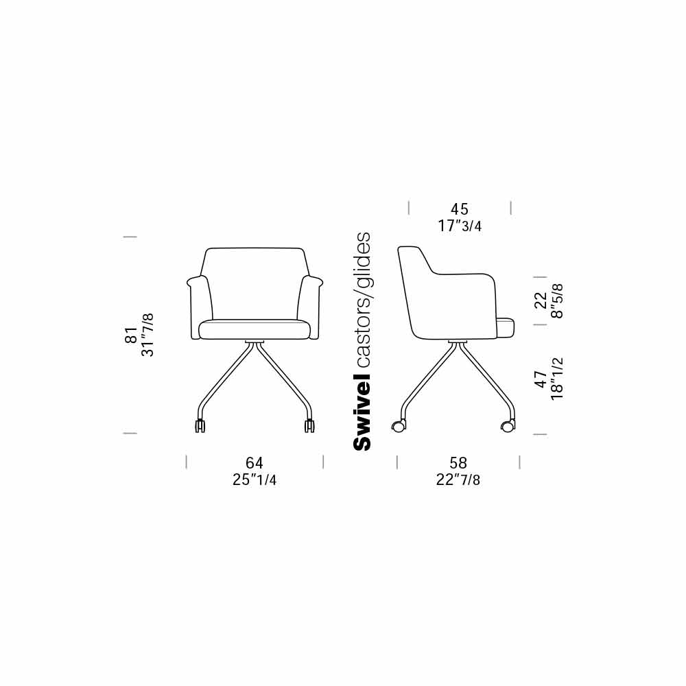 Cadeira de escritório giratória com rodas e apoios de braços made in Italy.