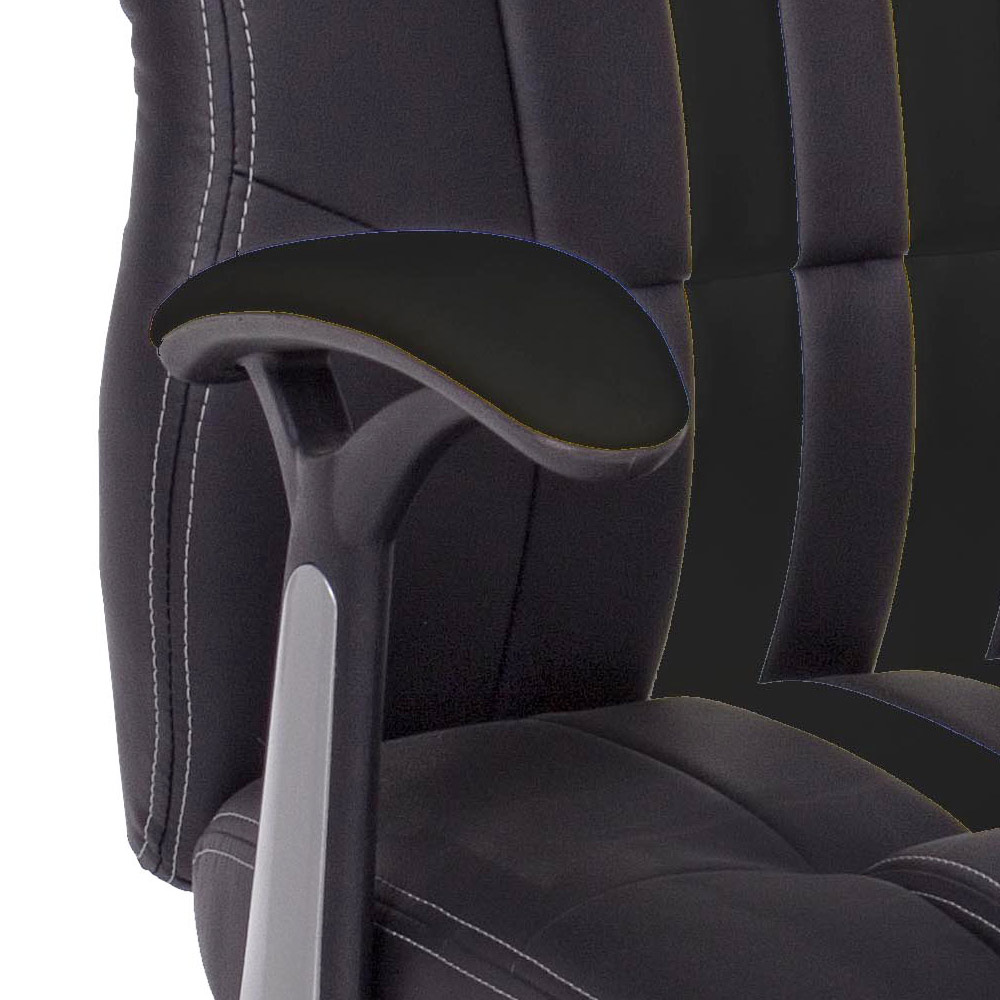 apoios de braços em aço com pintura eletrostática a pó com estofamento em couro sintético e o encosto com