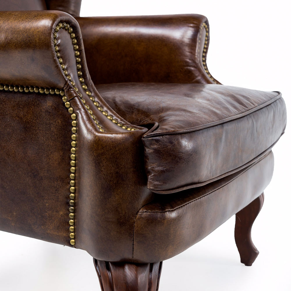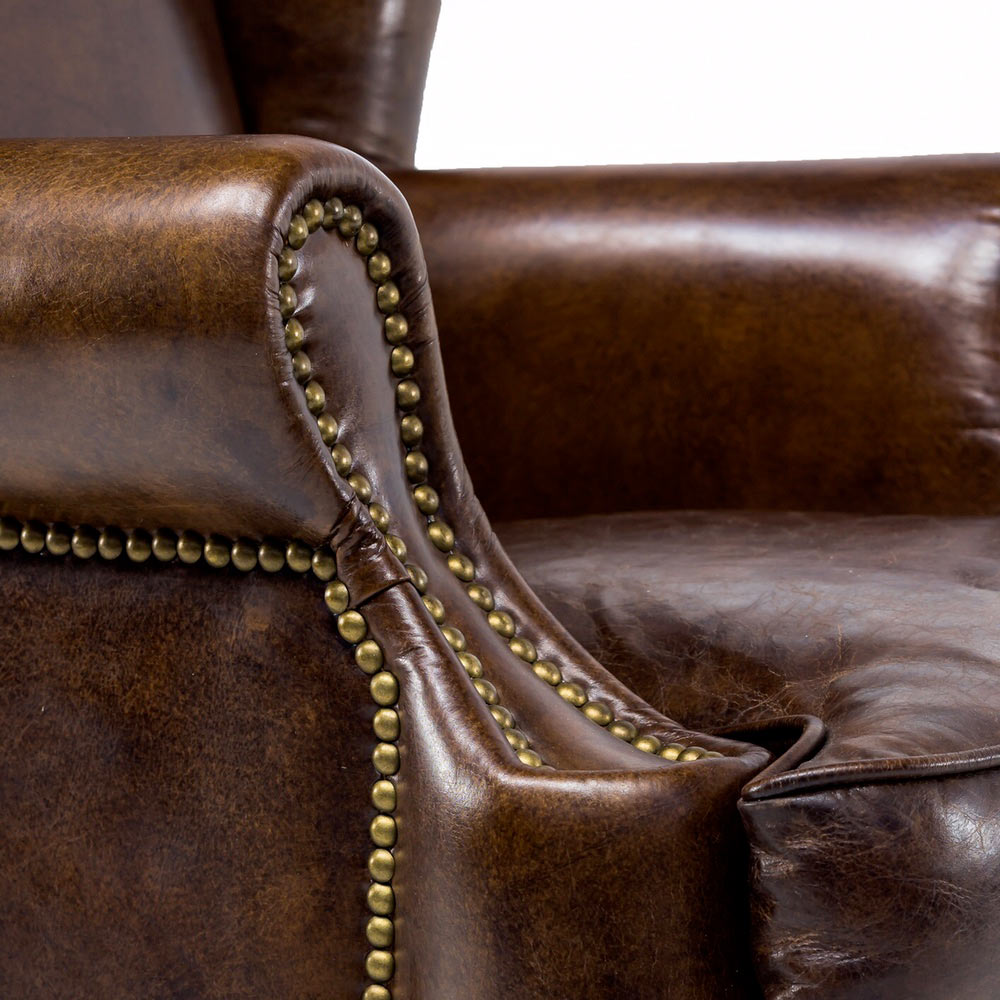 Poltrona interna feita de couro vintage com efeito envelhecido - carimbo