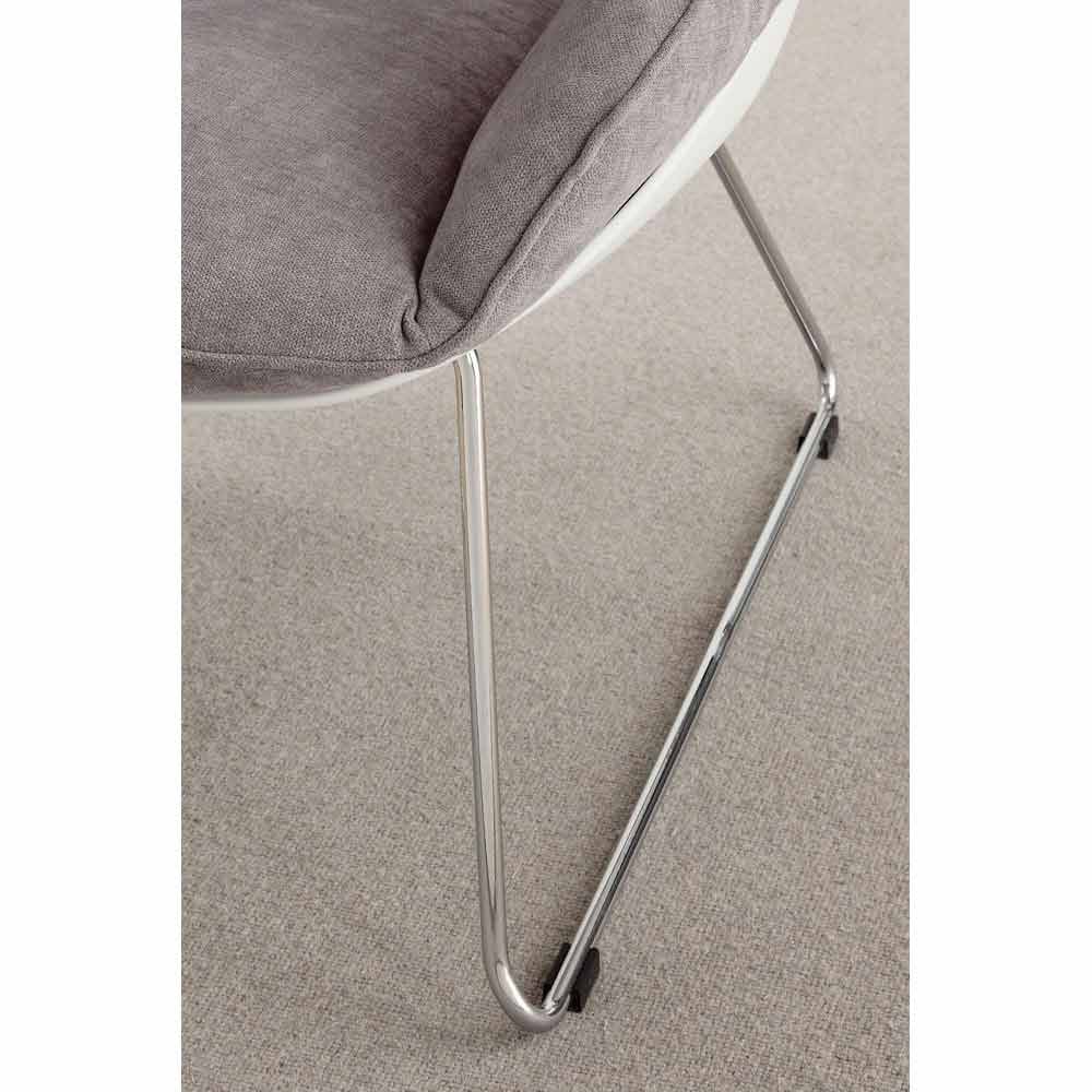 Betulla tem uma estrutura de metal cromado e uma concha branca de polipropileno. Esta poltrona de design é complementada por uma almofada cinza com capa removível.