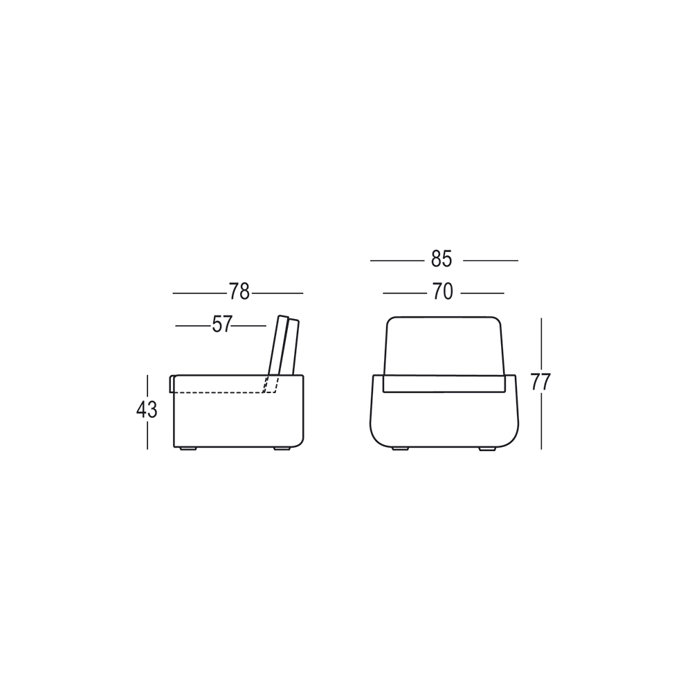 polietileno opaco, caracterizado por uma excelente resistência ao sol, calor e choques. Graças ao seu design moderno e elegante, esta poltrona é a solução ideal para ambientes que necessitam de um toque requintado sem descurar o aspecto funcional do conforto.