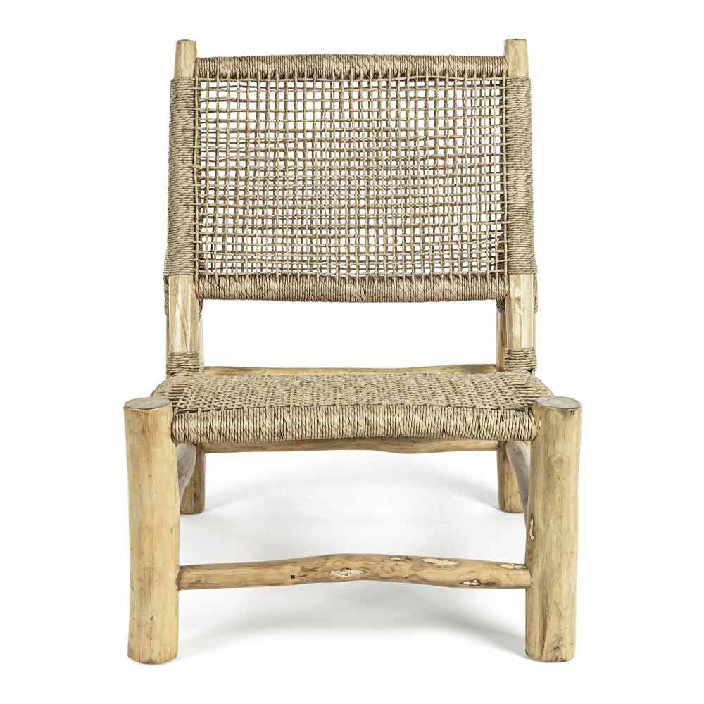 Estrutura em ramos de teca , assento e encosto com tecelagem em fibra sintética (viro).