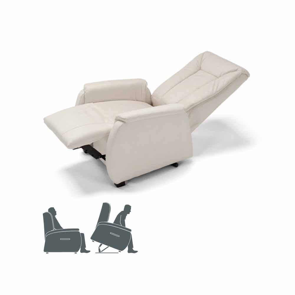 A poltrona de design Rosa possui um mecanismo bimotor capaz de gerar o movimento autônomo do encosto em relação ao apoio para os pés. Este mecanismo, através de uma seleção independente dos dois movimentos, permite obter diferentes combinações de relaxamento. Além das funções da mecânica de relaxamento, este mecanismo fornece um dispositivo de elevação que permite assumir facilmente a posição vertical para pessoas com dificuldades de mobilidade. Durante a fase de levantamento, a cadeira eleva-se até o solo de 10cm.