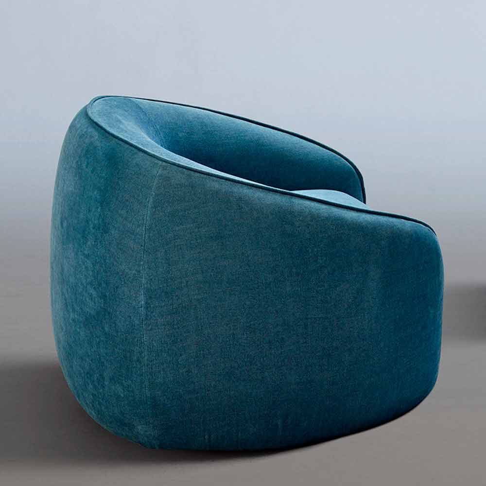 Poltrona de relaxamento moderna em laranja ou azul força aérea, design luxuoso com formas redondas fabricada na Itália.