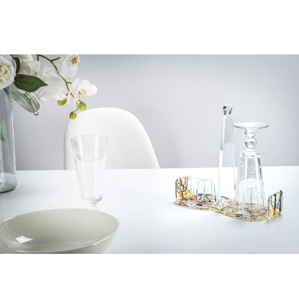 Porta-copos de plexiglass multicolorido fabricado na Itália.