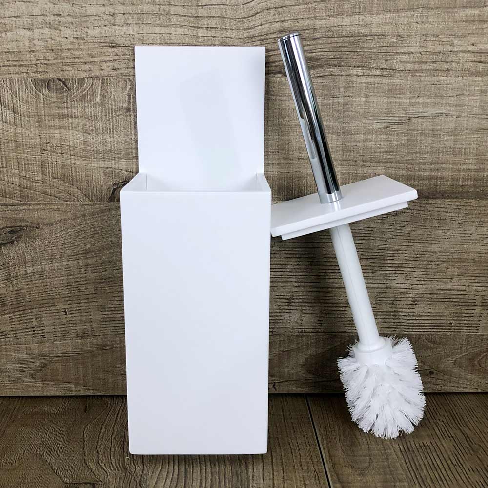 Escolha este porta-escova de vaso sanitário com 6 mm de espessura como um acessório de banheiro para um ambiente moderno e luxuoso. Totalmente confeccionado em Corian, um material higiênico de linhas essenciais.