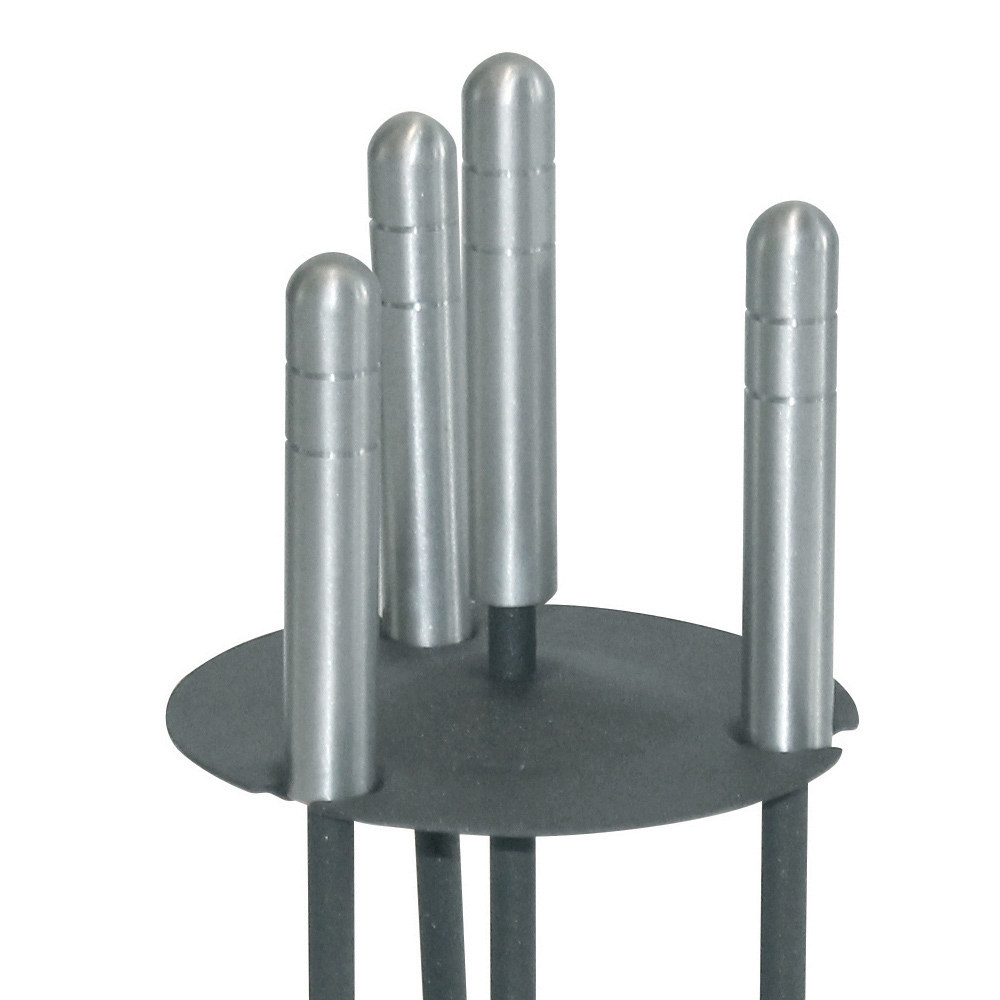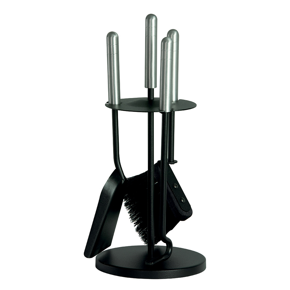 A estrutura fina, porém durável, acomoda graciosamente 3 acessórios, todos com alças resistentes que garantem fácil manuseio e durabilidade . O design compacto permite colocar o conjunto junto à lareira sem ocupar espaço, enquanto a base redonda garante estabilidade e ordem.