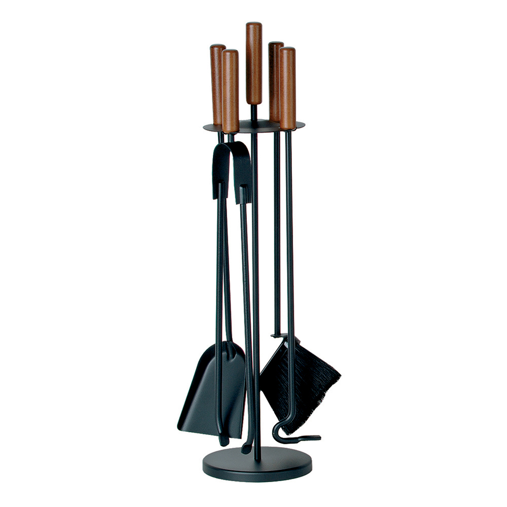 Este conjunto de utensílios para lareira combina a elegância do design clássico com a funcionalidade essencial para o cuidado da casa. A estrutura de metal preto, suportada por uma sólida base circular, foi projetada para oferecer estabilidade e durabilidade. Os detalhes em madeira nos cabos das ferramentas adicionam um toque de calor natural, contrastando lindamente com o acabamento em metal fosco e dando ao conjunto uma aparência aconchegante e refinada.