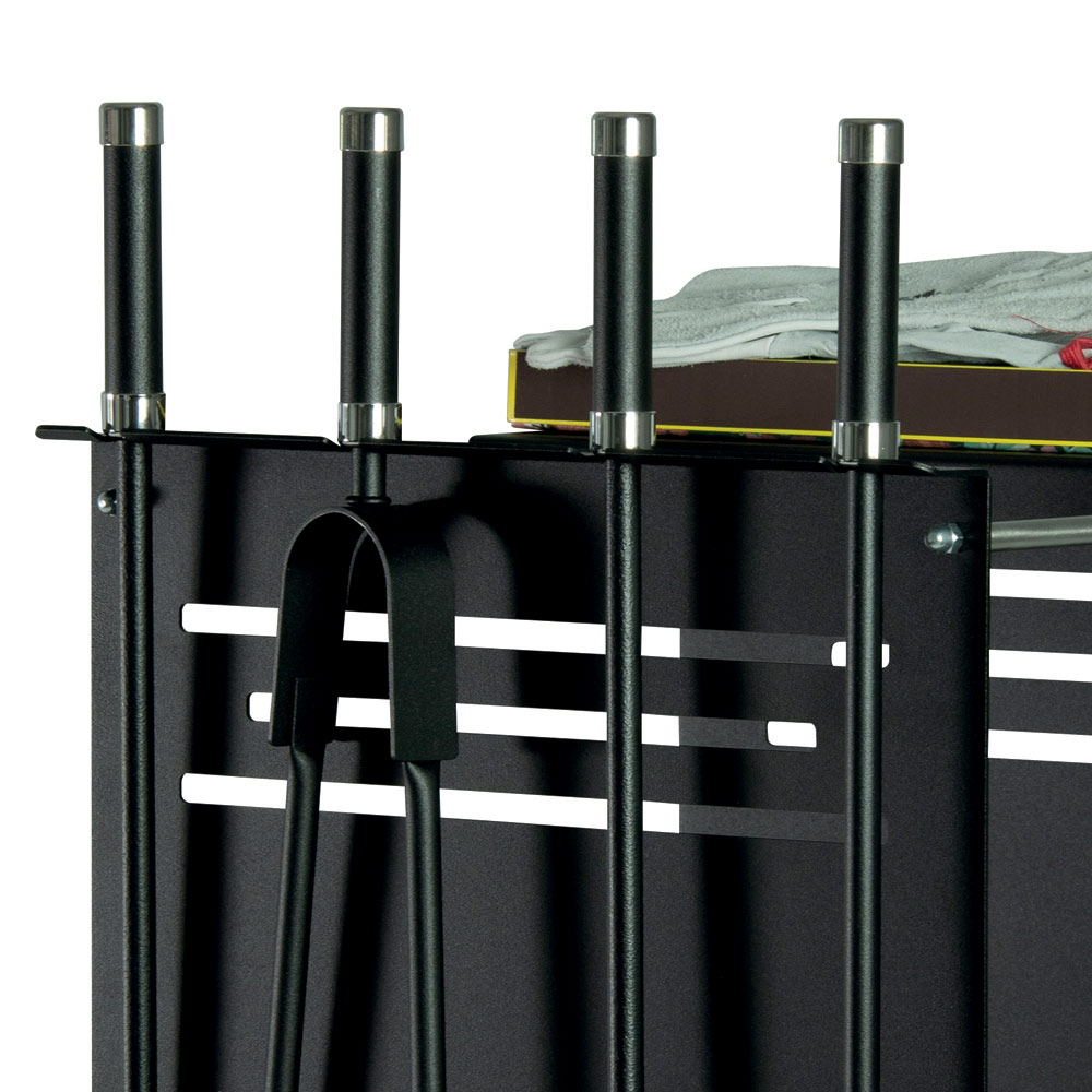 Este porta-lenhas multifuncional é um acessório essencial para os amantes de lareiras. Fabricado com estrutura metálica resistente, é equipado com rodas para facilitar a movimentação. O móvel serve não só para guardar uma boa quantidade de lenha, mas também oferece espaço dedicado para os utensílios necessários ao manejo do fogo: pá, escova, pinça e gancho, mantendo assim a ordem e a praticidade.