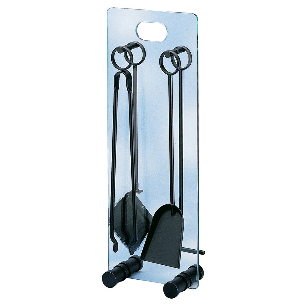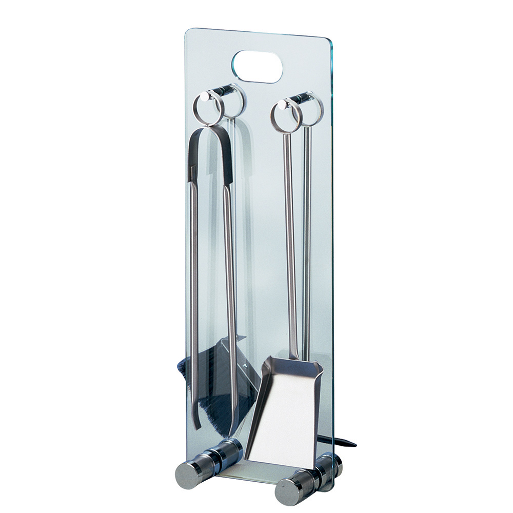 O porta-ferramentas inclui quatro acessórios essenciais para lareira : uma pinça, uma pá, um gancho e uma escova . Cada ferramenta foi projetada para oferecer máxima eficiência e conforto durante o uso, aliando praticidade com estética refinada.