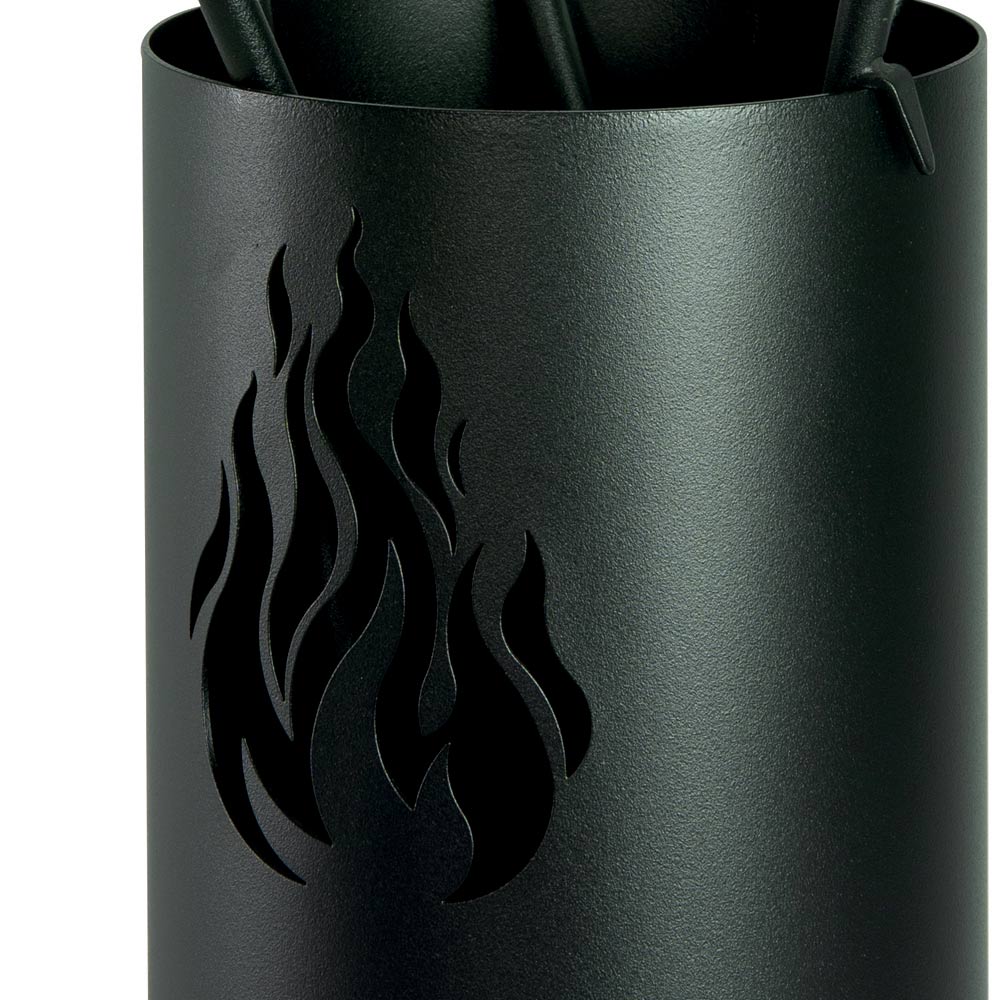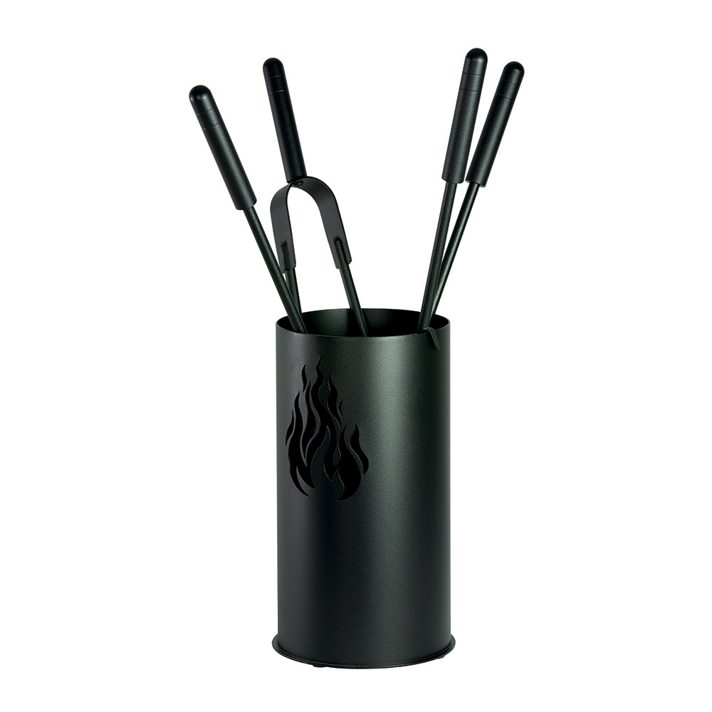 Completo com 4 acessórios, este conjunto tem tudo que você precisa para manter o fogo aceso e a área da lareira arrumada . A base cilíndrica não ocupa muito espaço e mantém as ferramentas organizadas e de fácil acesso. Este conjunto não é apenas um companheiro indispensável para as noites frias de inverno, mas também uma declaração de estilo que fala de simplicidade sofisticada e funcionalidade atemporal.