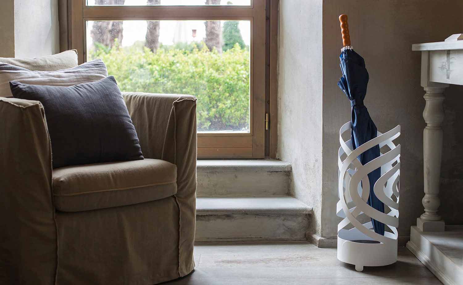 Para melhorar a vida cotidiana de cada pessoa, basta dar ao mobiliário doméstico um toque de design e estilo com objetos úteis e imaginativos: o suporte do guarda - chuva.