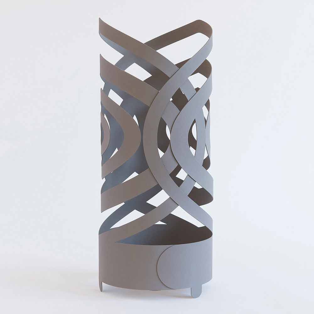 O suporte para guarda-chuva da Olfeo é delineado por linhas específicas que lembram o formato das fitas entrelaçadas.