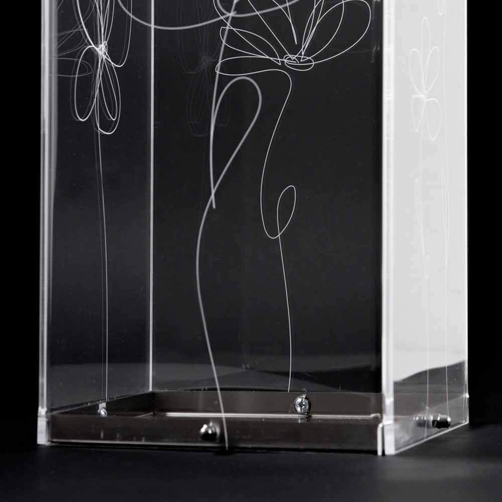 Esta coleção de suportes para guarda-chuvas de plexiglass investiga a natureza com delicados detalhes marcados a laser , para um efeito tridimensional que cria fantásticos jogos de luz. Uma linha que alia estética e funcionalidade , para um móvel único , com grande impacto decorativo pela atenção aos detalhes e pelo gosto elegante e contemporâneo.