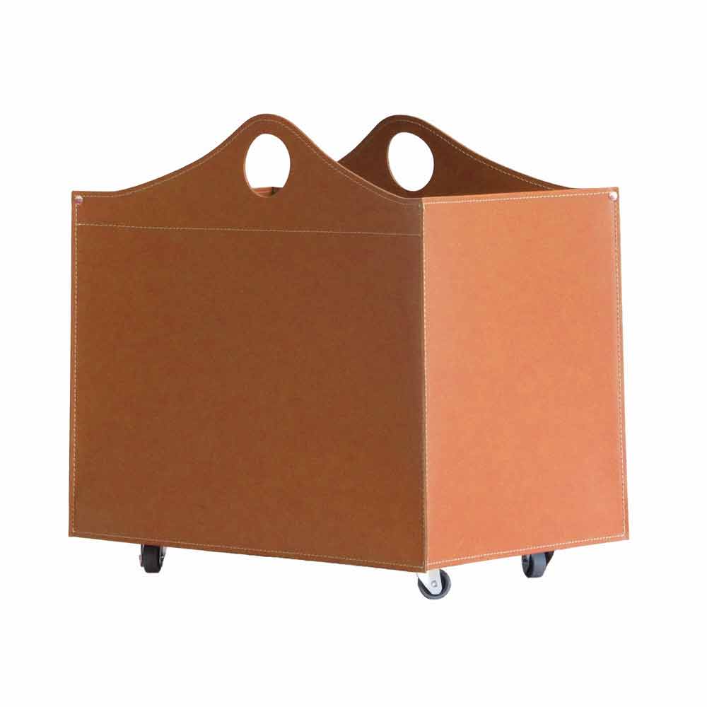 Titular de lenha de couro tradicional adequado para qualquer uso em sua casa. Estrutura em compensado revestido em couro e com rodas de borracha.