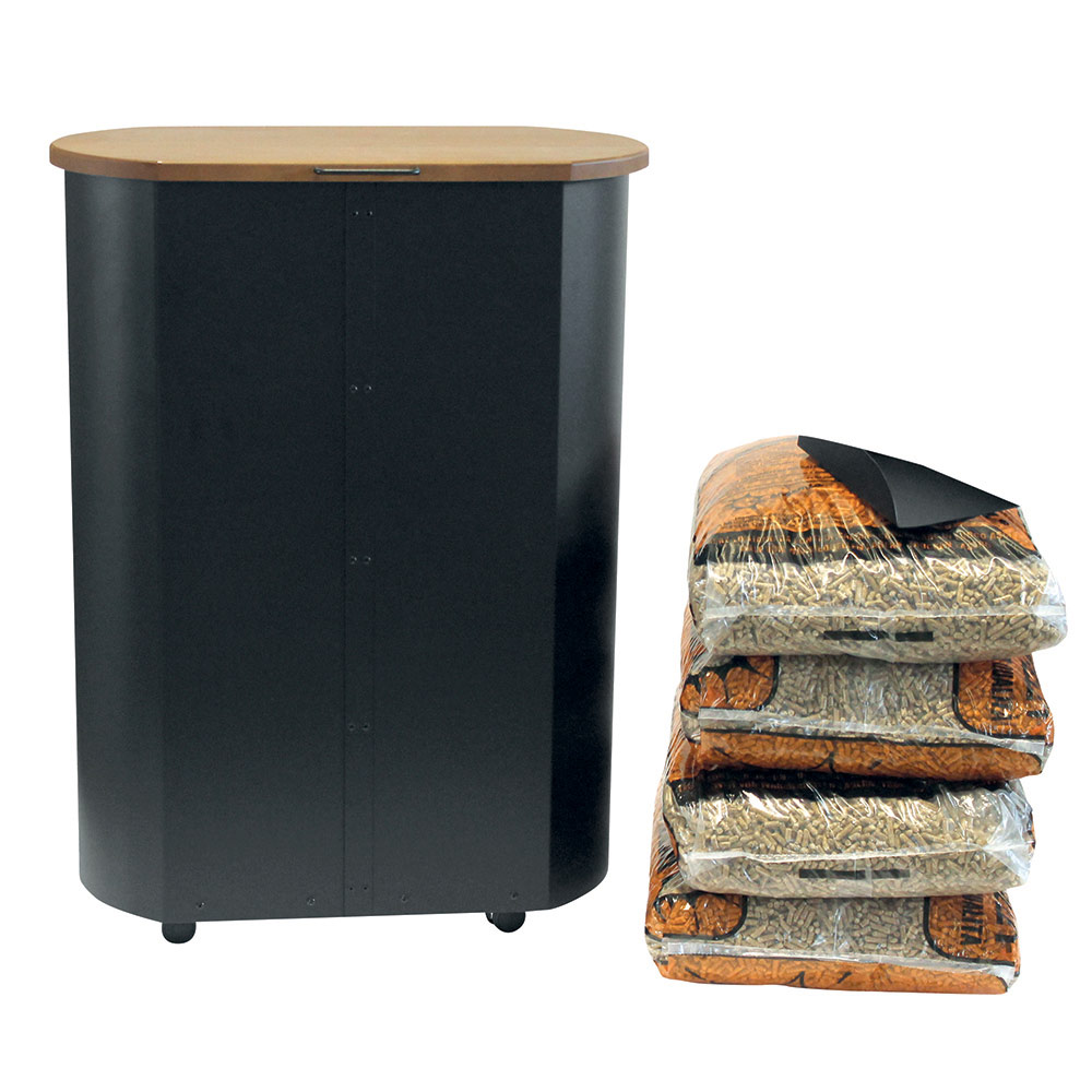 Na parte inferior, rodas discretas mas robustas garantem uma fácil movimentação, permitindo deslocar o porta-pellets do ponto de armazenamento até à lareira com o mínimo esforço. Este porta-pellets não é apenas um objeto funcional , mas também uma peça de mobiliário que chama a atenção e valoriza a estética do seu espaço habitacional. Com sua capacidade generosa e silhueta atraente, é o complemento ideal para quem busca conforto sem abrir mão do estilo.