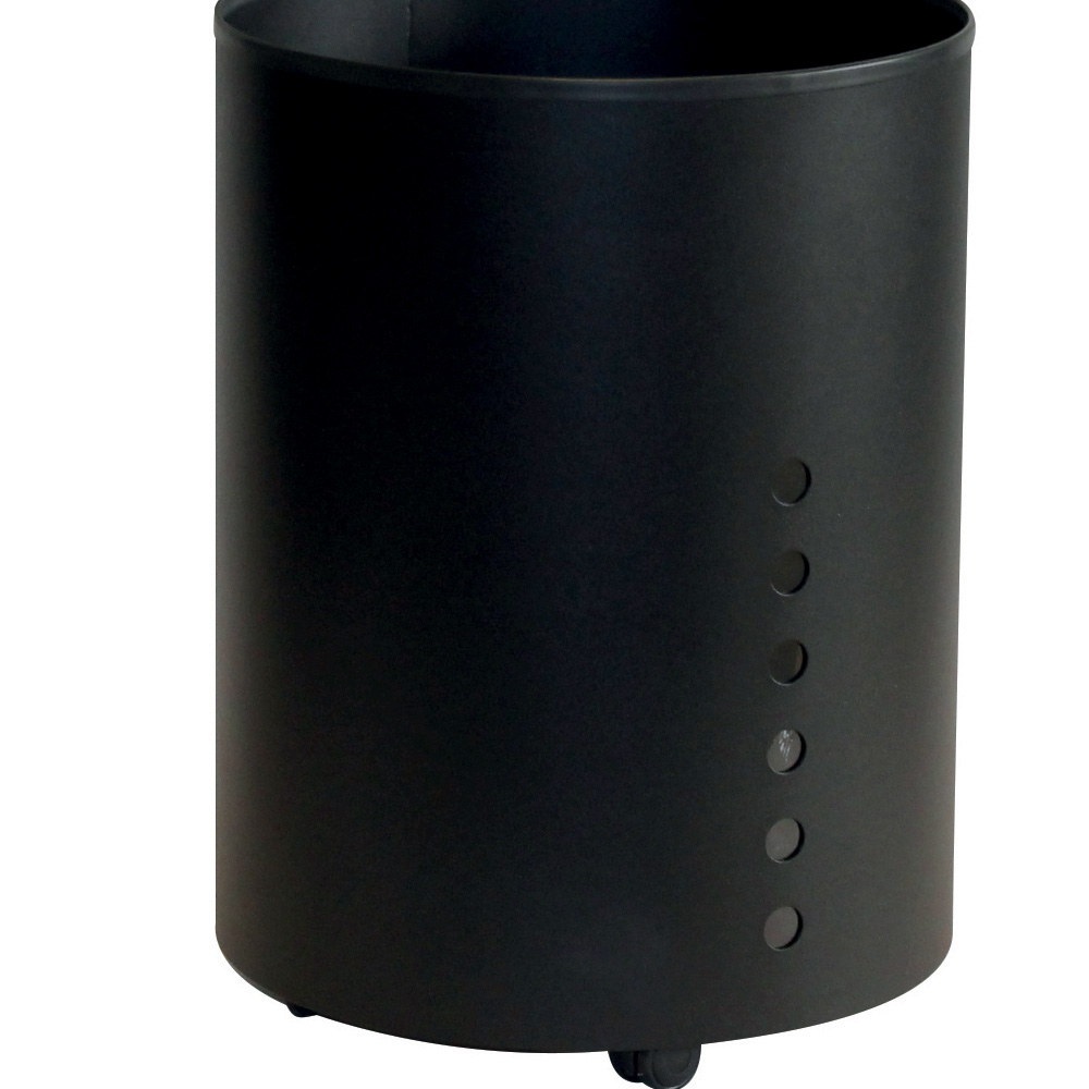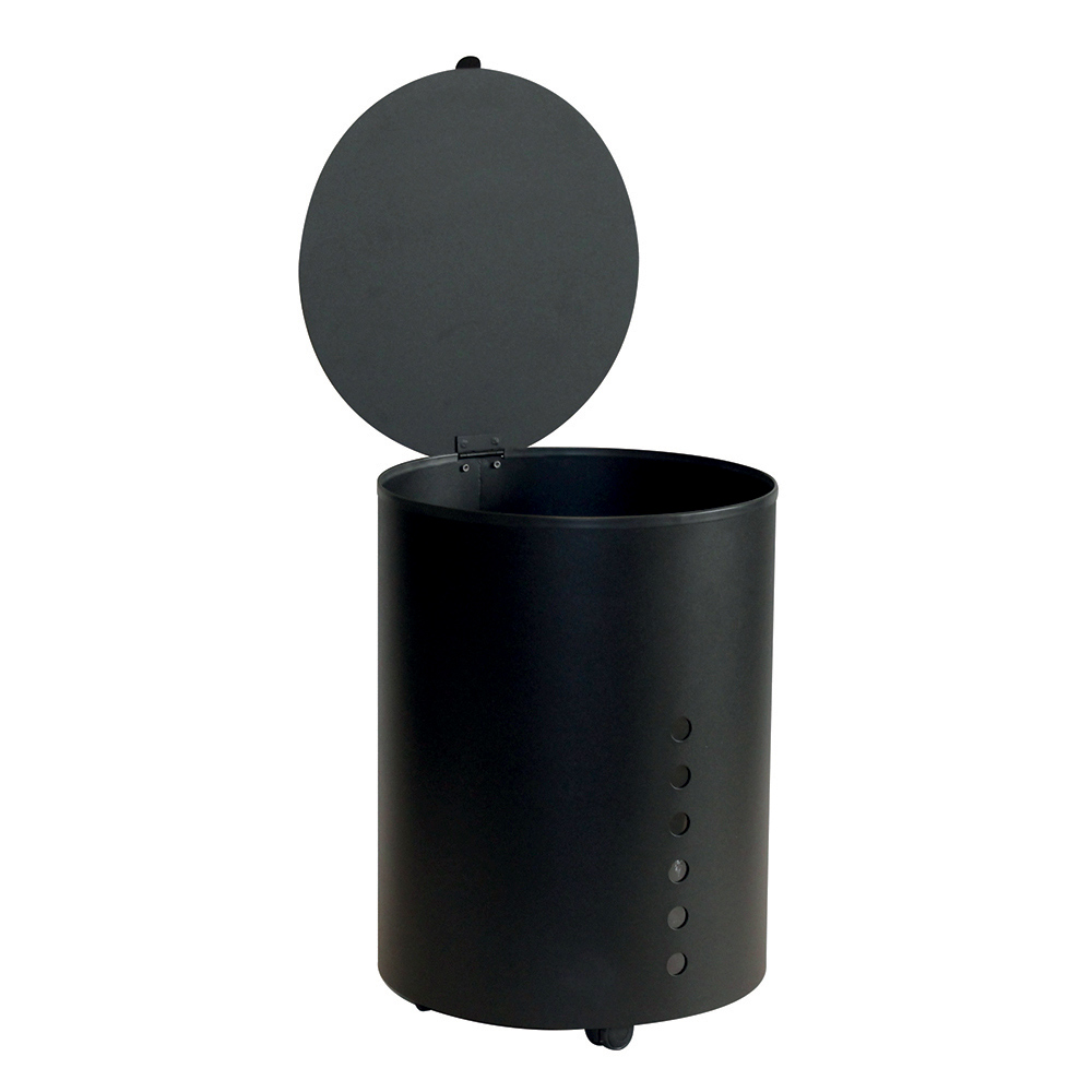 Este porta-pellets foi projetado tendo em mente a estética e a funcionalidade . Seu formato cilíndrico com acabamento em preto adapta-se a ambientes com design moderno e tradicional. A tampa superior permite proteger o conteúdo da humidade e da sujidade, preservando a qualidade dos pellets.