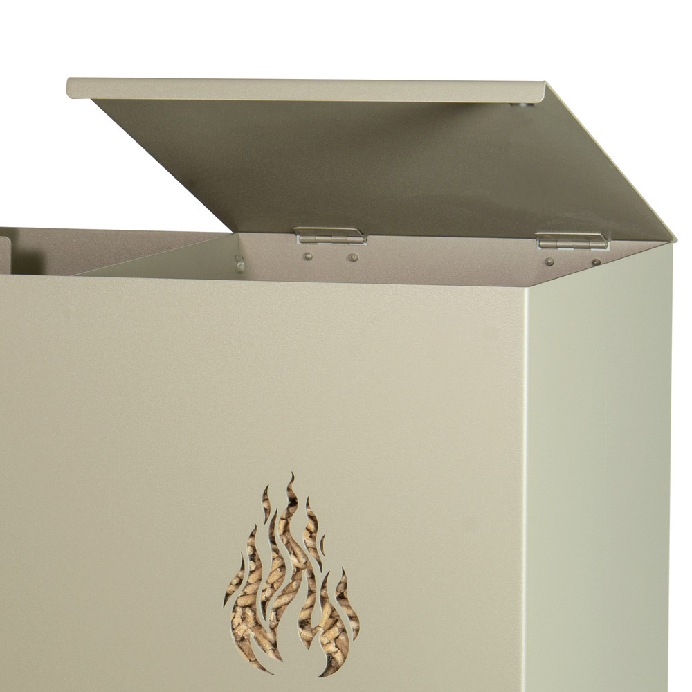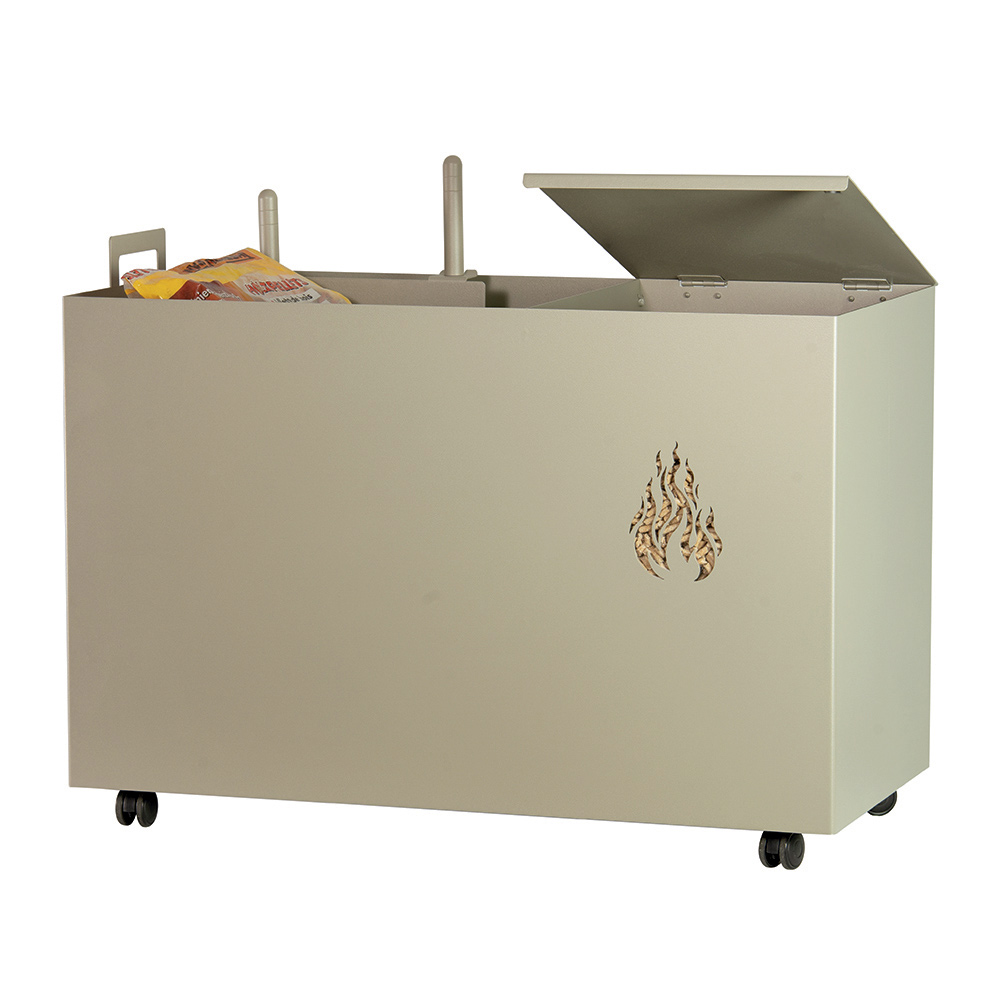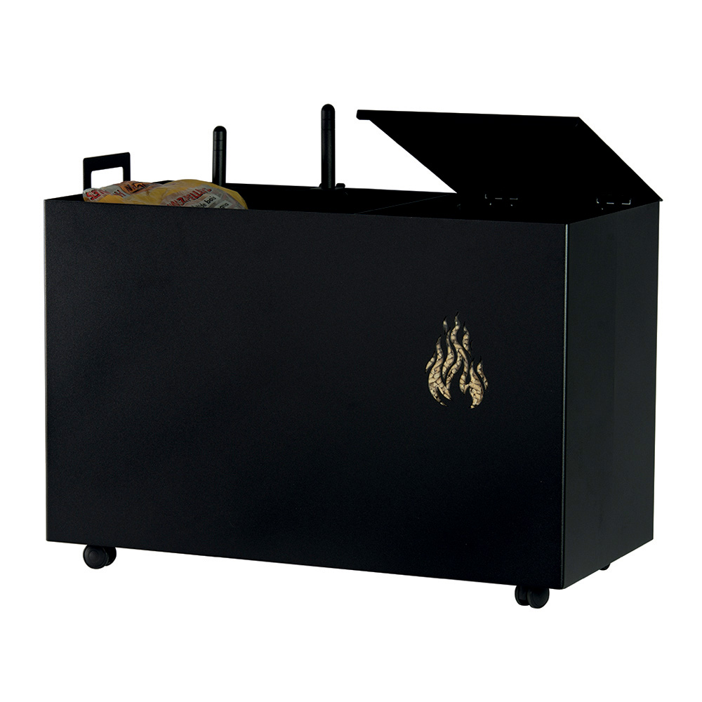 Este carrinho de pellets para lareira é a solução ideal para quem procura uma forma elegante e prática de armazenar pellets. A estrutura robusta e o design moderno adaptam-se perfeitamente a qualquer estilo de interior. O símbolo da chama na parte frontal acrescenta um detalhe decorativo que sublinha a função do carrinho, tornando-o imediatamente reconhecível.