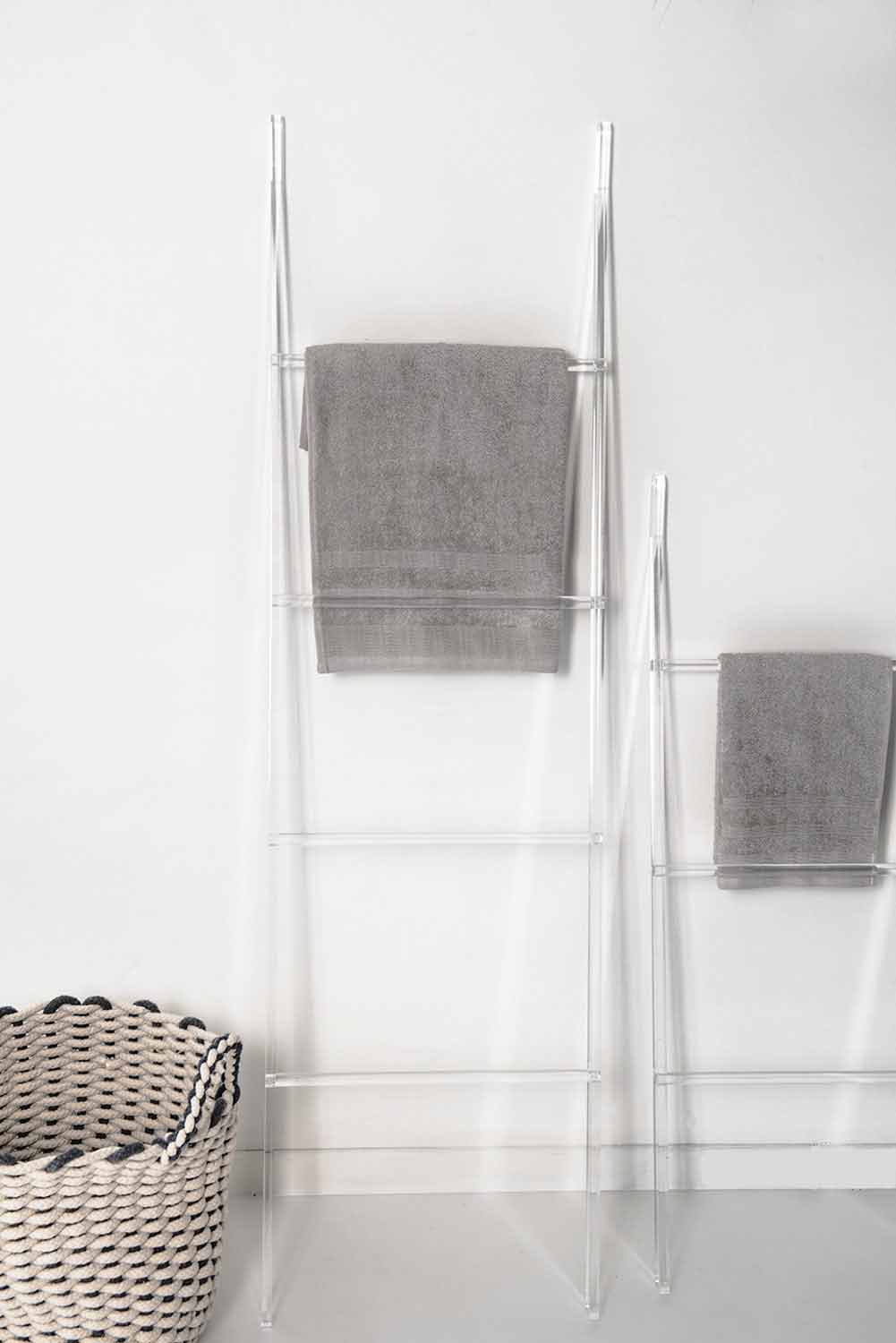 Projeto da escada do secador de mãos em plexiglass, disponível em duas alturas em plexiglass made in Italy.