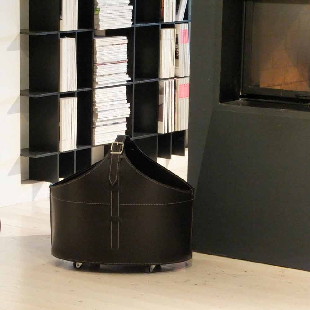 O suporte para lenha coberta Fabia é inteiramente fabricado na Itália por artesãos especializados, usando material de alta qualidade, como couro colado. A base é feita de madeira compensada, coberta de couro. Ele é fornecido com uma alça e com rodas de borracha úteis que permitem movê-lo em todos os lugares que você gosta.