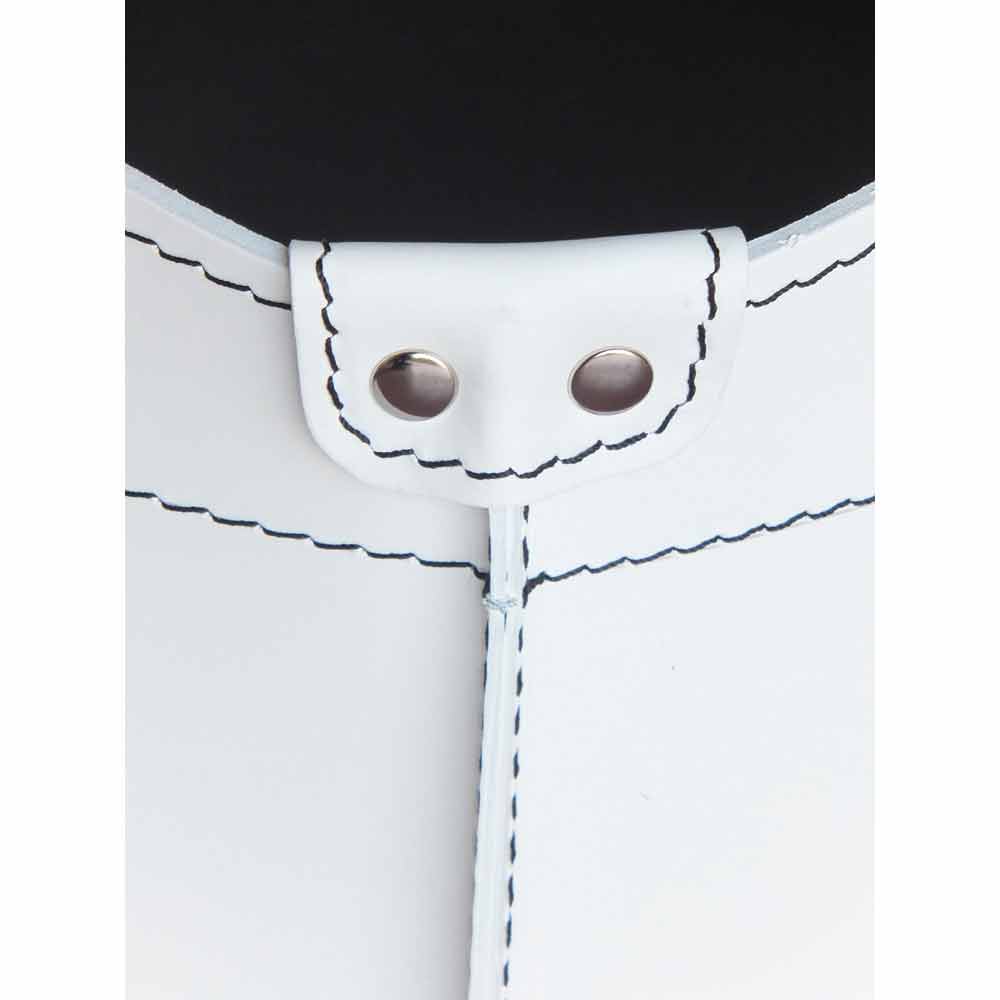 É caracterizado por costuras visíveis e está disponível em cores diferentes.