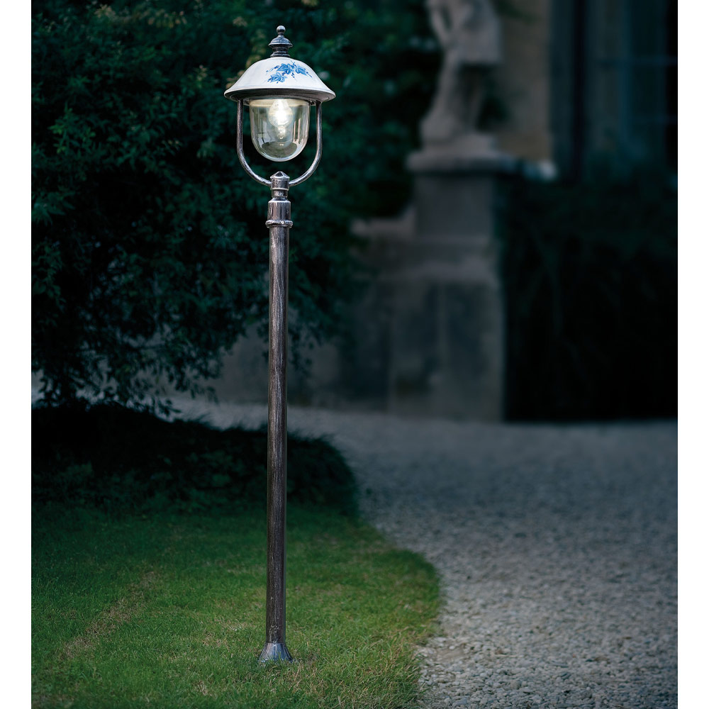 Este poste de jardim é inteiramente feito de alumínio decorado com flores pintadas à mão para um estilo clássico e harmonioso entre forma e cores.