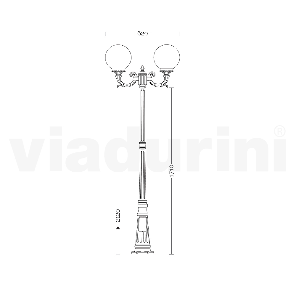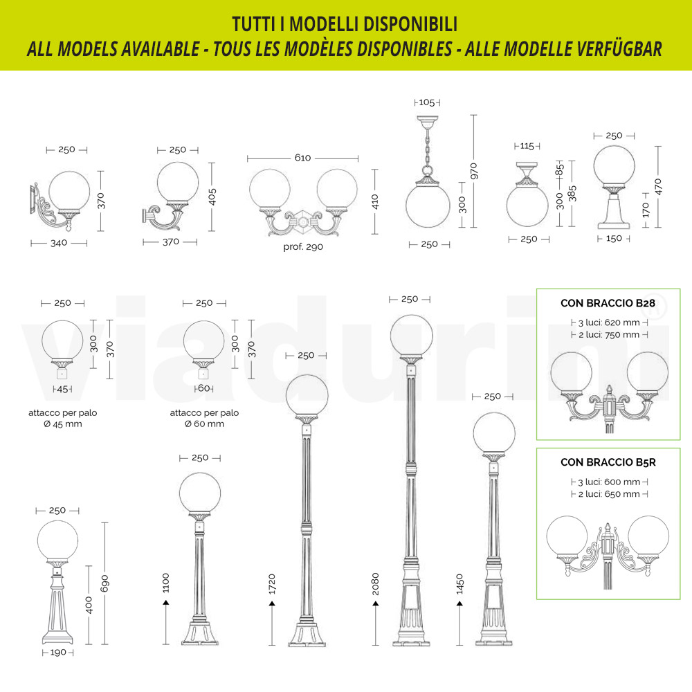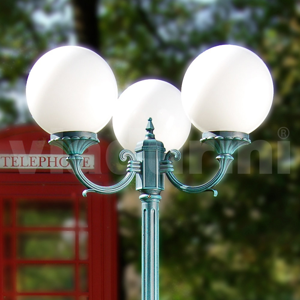 Candeeiro de jardim fabricado com estrutura em alumínio fundido e difusor esférico em acrílico opalino , inteiramente Fabricado em Itália.