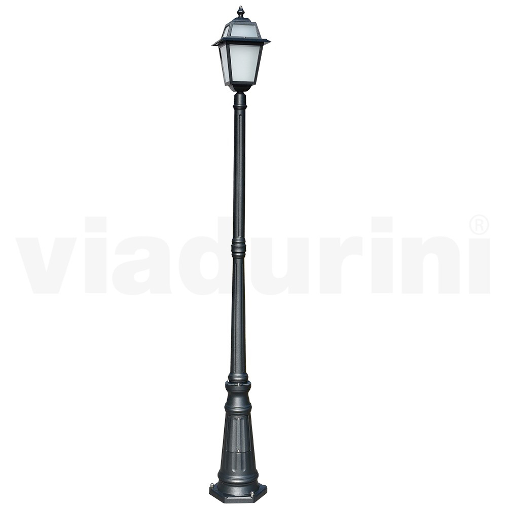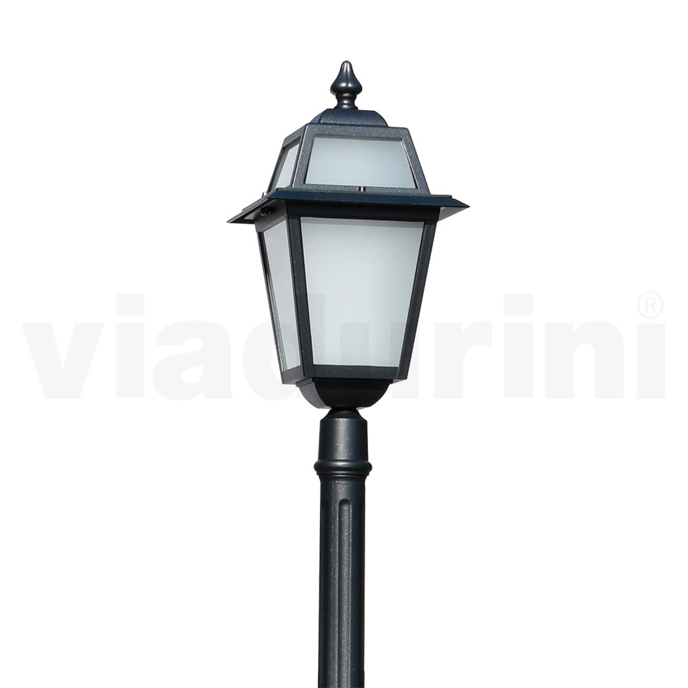 Candeeiro de jardim fabricado com estrutura em alumínio fundido com acabamento antracite e difusor em vidro jateado , inteiramente Fabricado na Itália.
