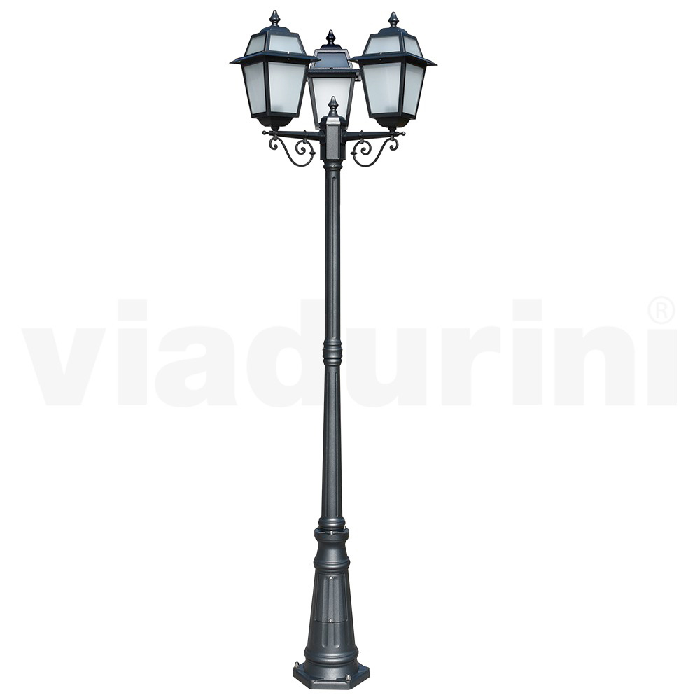 Este candeeiro de rua em alumínio fundido com acabamento antracite é uma escolha elegante para qualquer ambiente exterior. Com design clássico e elegante, apresenta detalhes trabalhados que evocam uma atmosfera de tempos passados. As 3 lanternas, com atenção aos mínimos detalhes, espalham uma luz quente e suave, ideal para criar um caminho luminoso no seu jardim ou para delimitar com classe uma área de relaxamento ao ar livre. Solidez e beleza unem-se neste candeeiro de rua, concebido para durar no tempo e resistir aos agentes atmosféricos. Elegante e funcional , será a assinatura luminosa do seu espaço exterior.