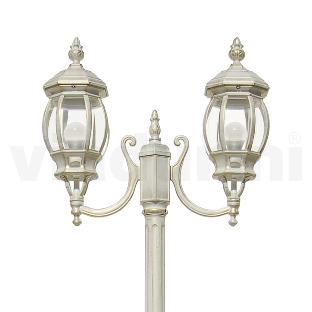 Poste de luz 2 luzes de jardim vintage em alumínio e policarbonato Fabricado na Itália.
