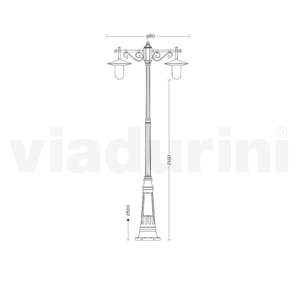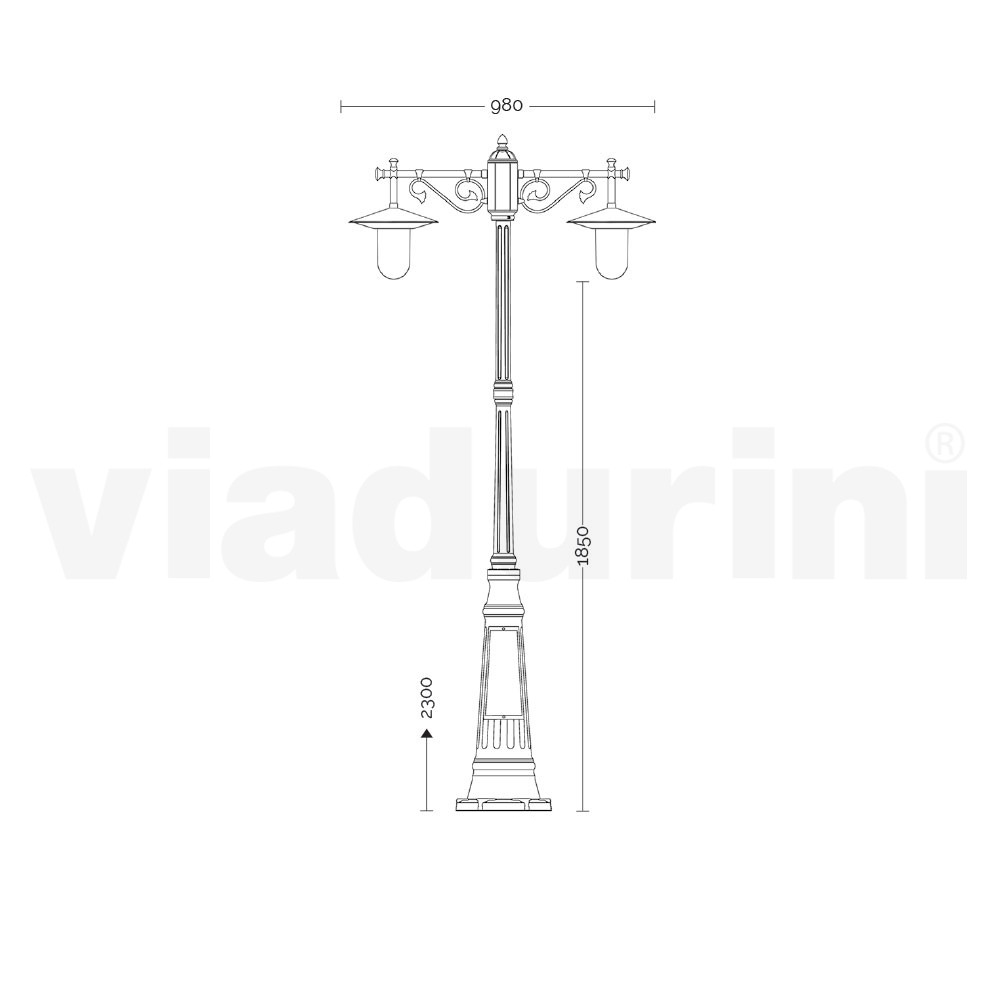 Candeeiro de jardim de 2 luzes fabricado em Itália com estrutura