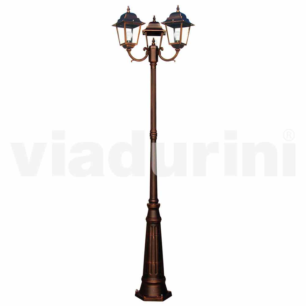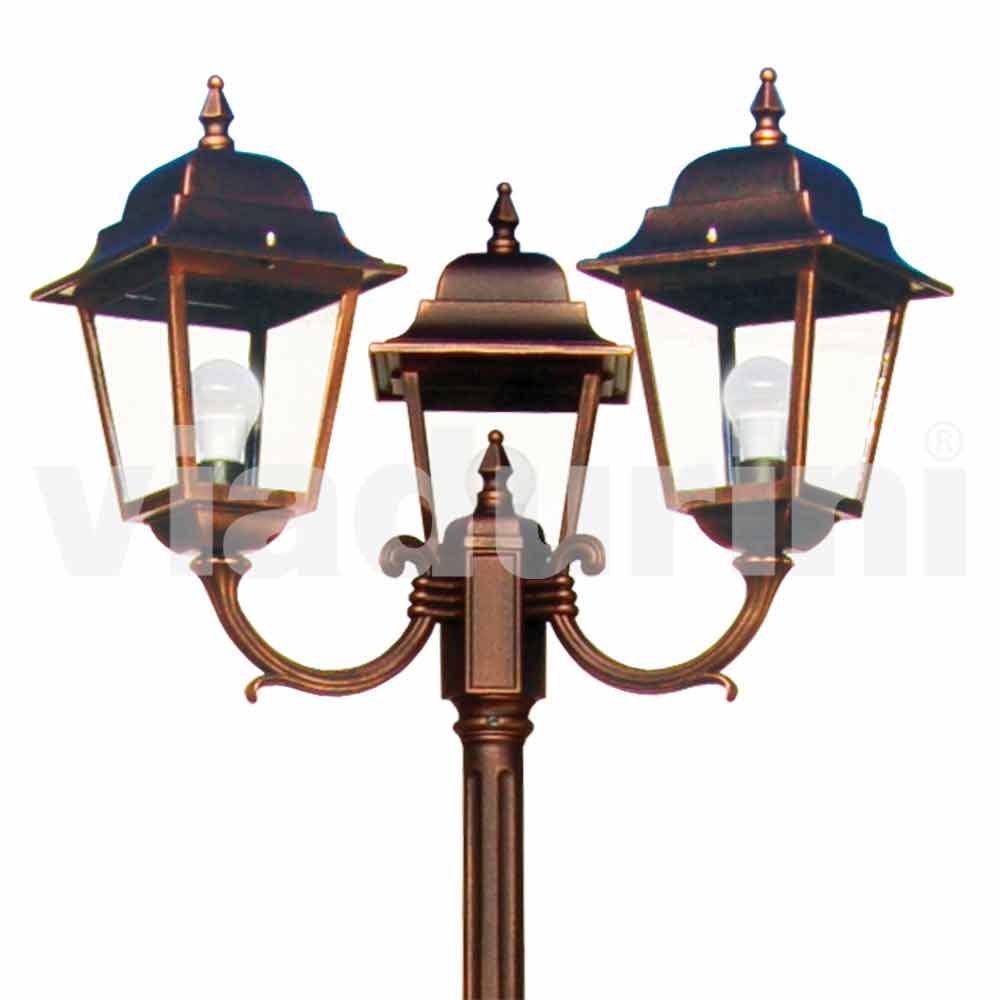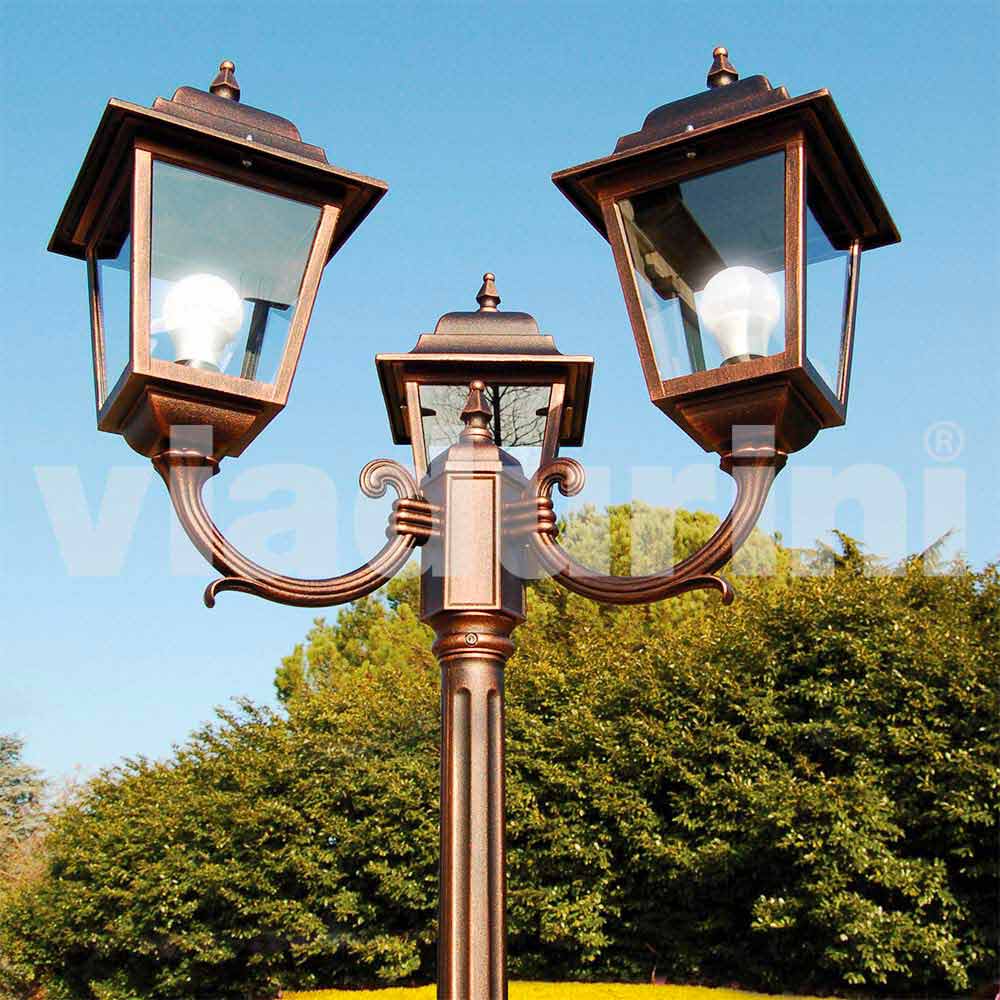 Poste de luz clássico de alumínio para exterior fabricado na Itália, Aquilina Aquilina é um candeeiro de jardim com três luzes feito à mão na Itália com material de alta qualidade: estrutura em alumínio fundido e difusor em vidro disponível: transparente ou jateado.