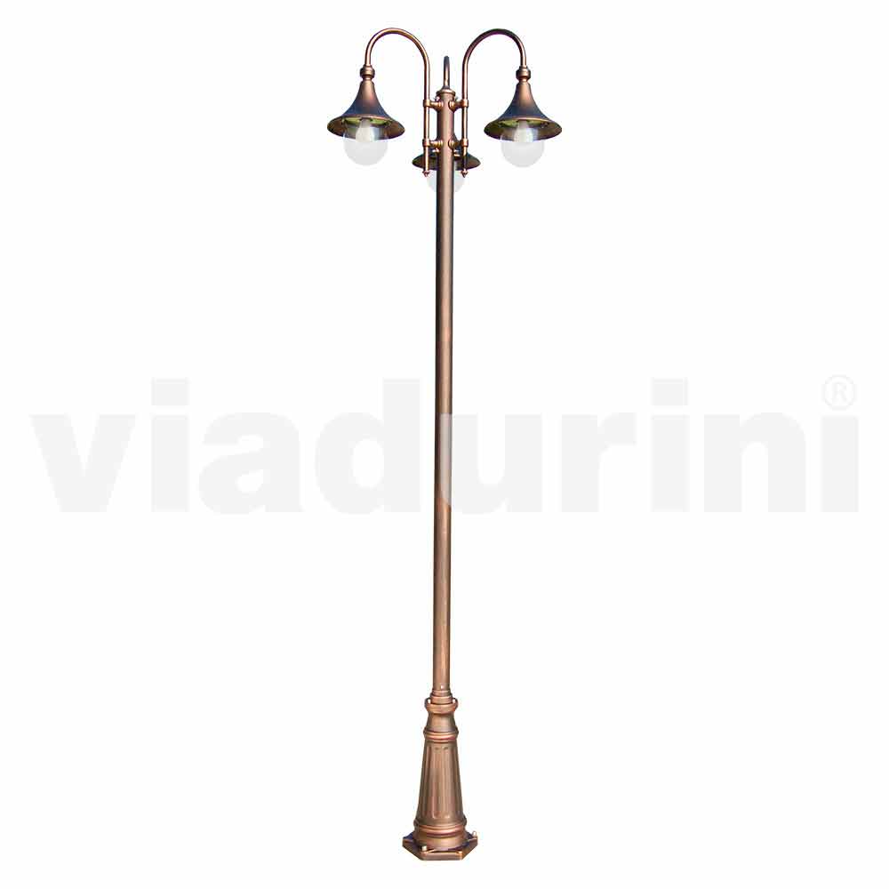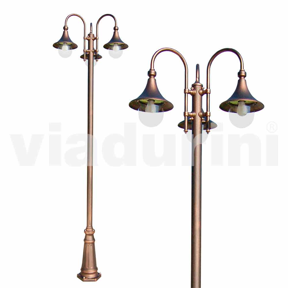 Candeeiro exterior de três luzes em alumínio fabricado na Itália, Anusca