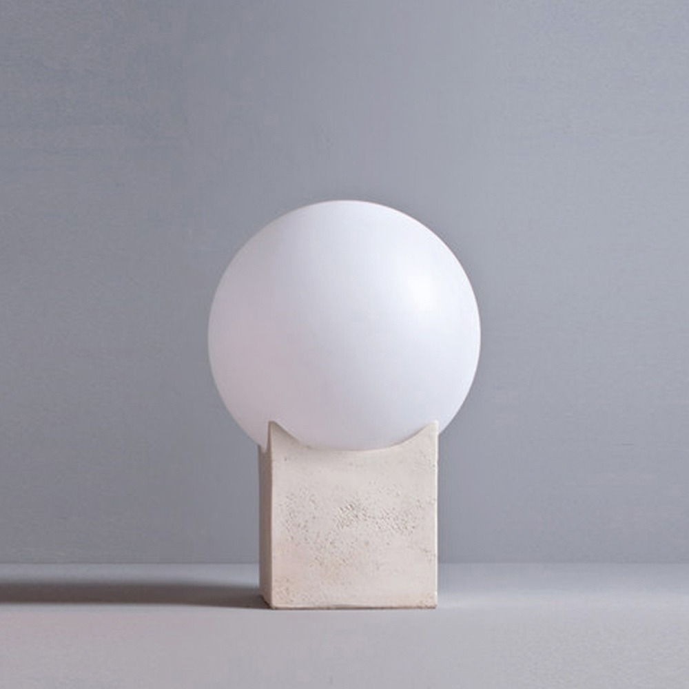 A série ATLANTE oferece uma reinterpretação da lanterna exterior, jogando com o contraste entre a redondeza da esfera iluminante e a angularidade da base em terracota.
