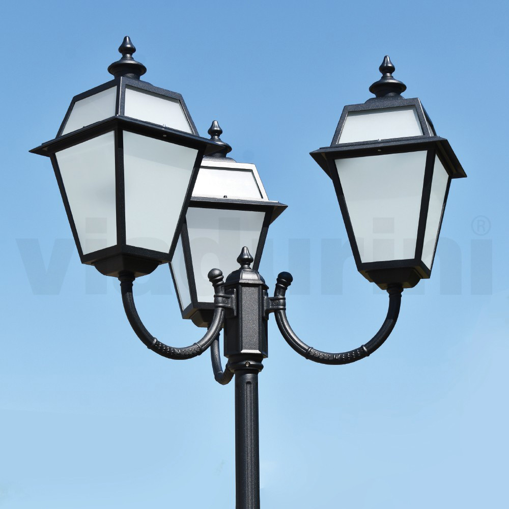 Candeeiro de jardim com 3 luzes em alumínio e vidro Fabricado na Itália.