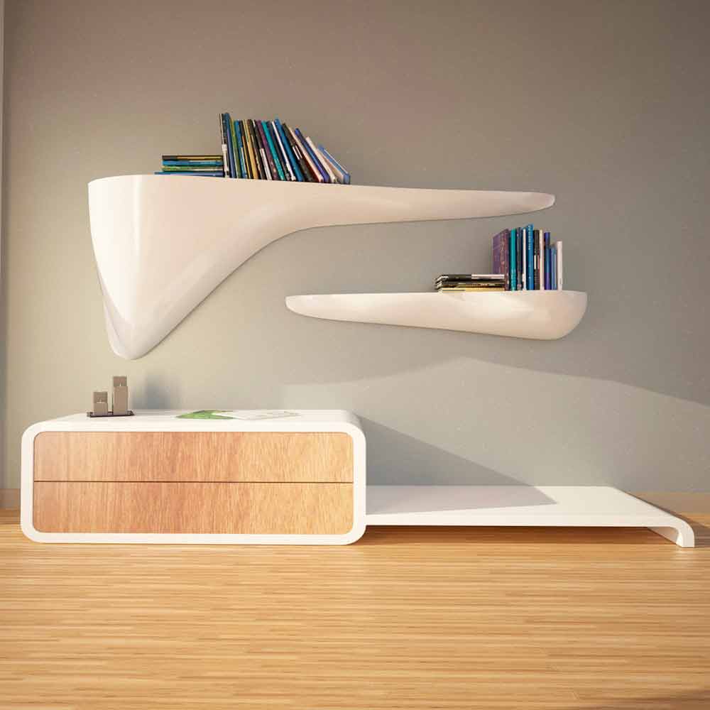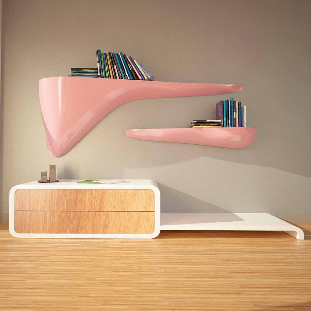 Sizzano é uma prateleira com uma forma particular feita inteiramente de Solid Surface®; perfeito para decorar ambientes com originalidade e classe.
