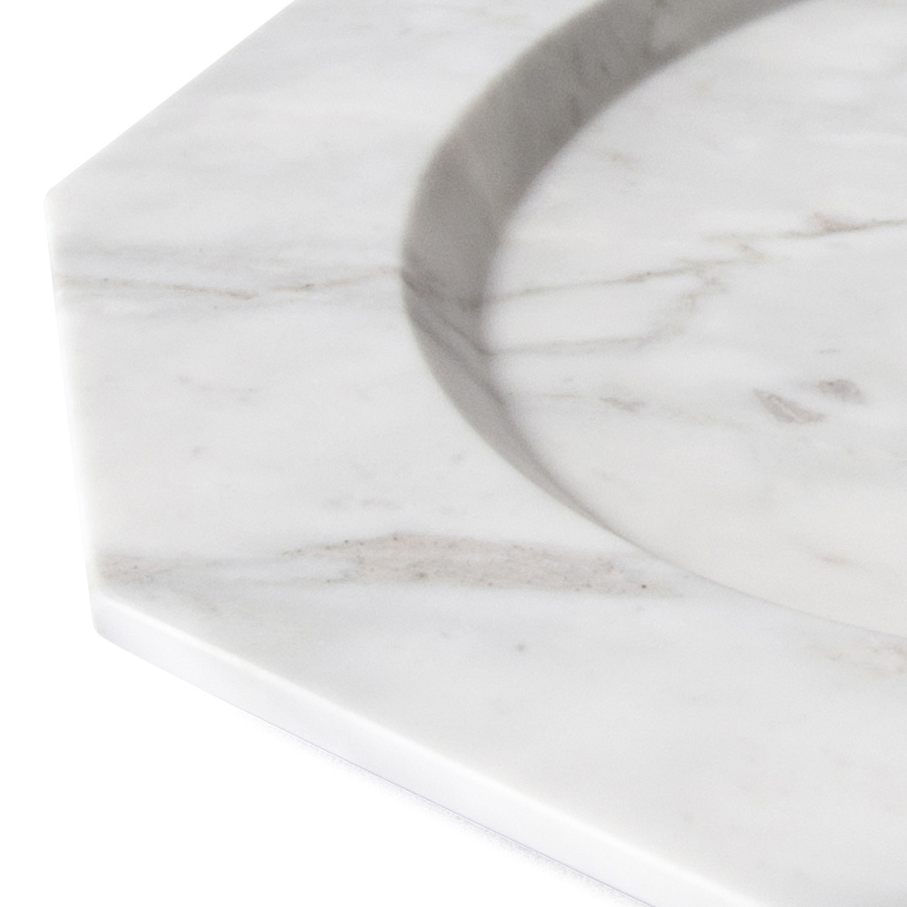 Um design sofisticado e requintado capaz de se tornar protagonista no ambiente de destino graças à sua essencialidade enfatizada pelo mármore Arabescato Carrara com acabamento acetinado com o qual é confeccionado.