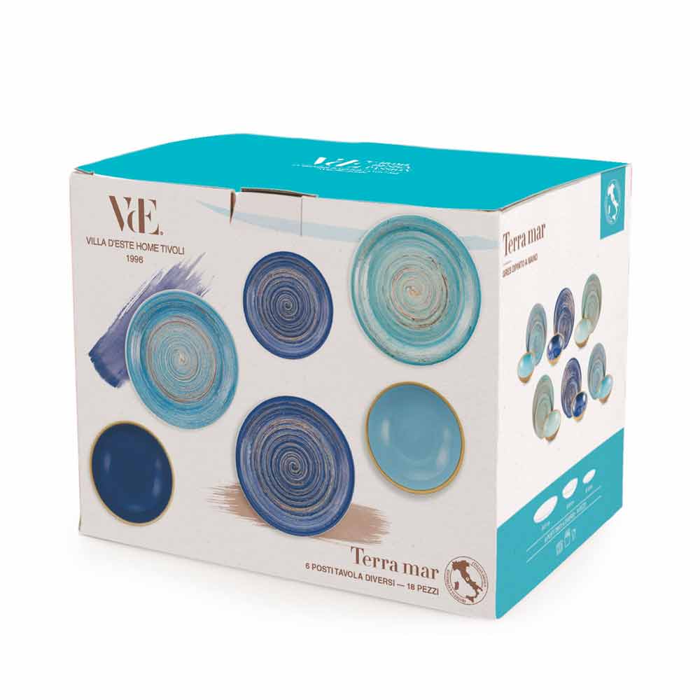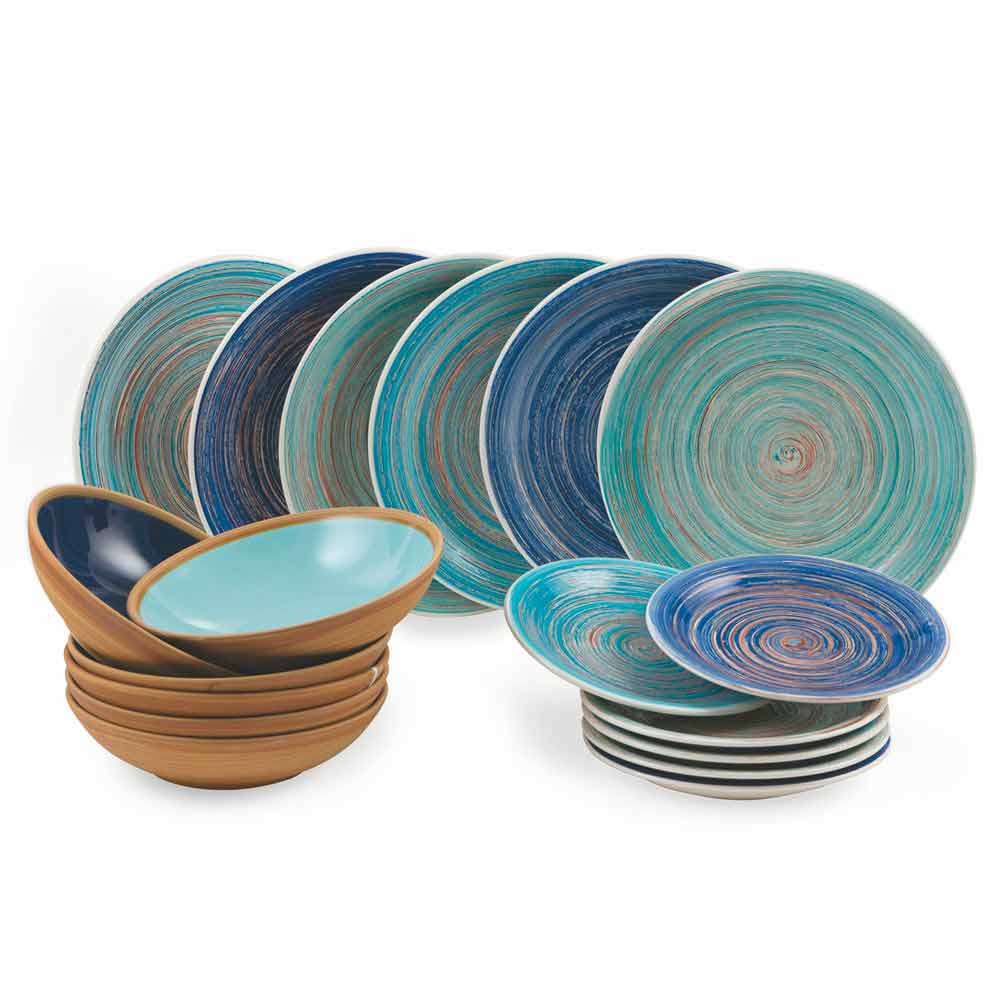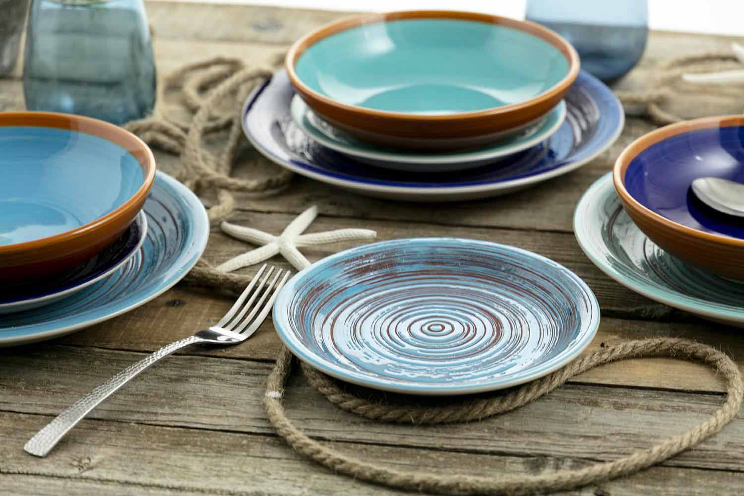 Pratos coloridos e modernos de 18 peças em grés, serviço de mesa completo.