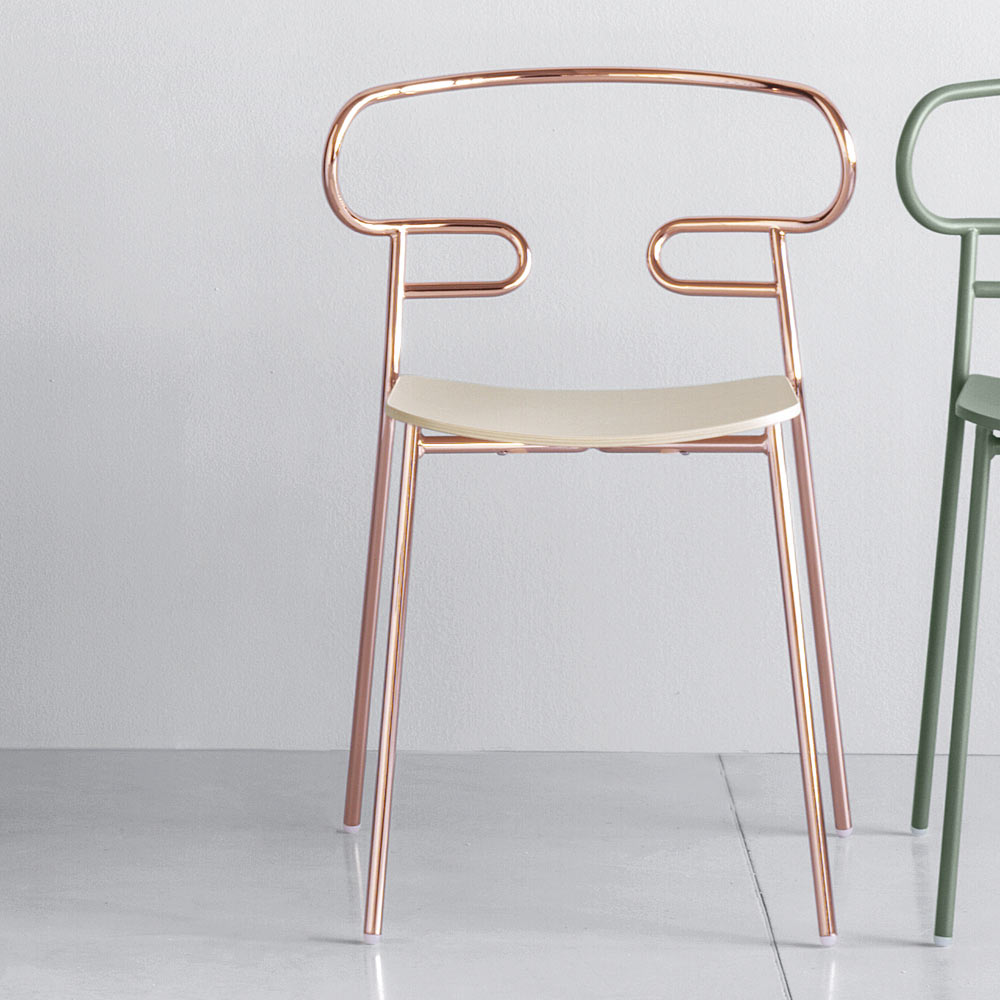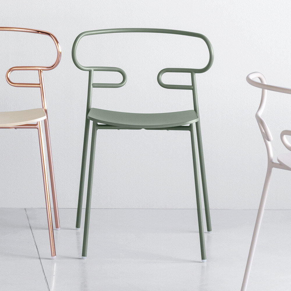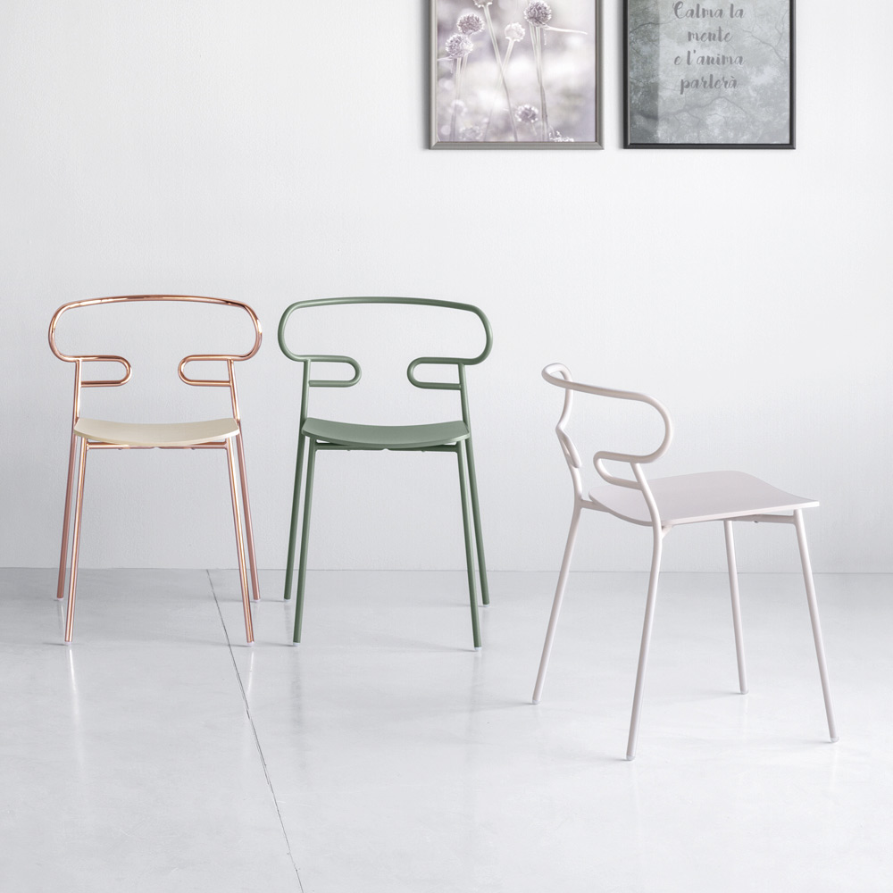Cadeira para sala de jantar ou cozinha em metal pintado com assento em madeira de freixo made in Italy. Da combinação perfeita de elegância e simplicidade surge este objeto de design com linhas extremamente essenciais que dá uma sensação de movimento e se destaca pela peculiaridade do encosto obtido graças à curvatura de um único tubo metálico. Esta característica aumenta a sua originalidade , criando assim um assento tão confortável quanto esteticamente interessante e único. Além disso, graças à possibilidade de serem empilhadas, estas cadeiras têm uma funcionalidade ainda superior , permitindo assim otimizar e organizar os espaços da melhor forma possível.