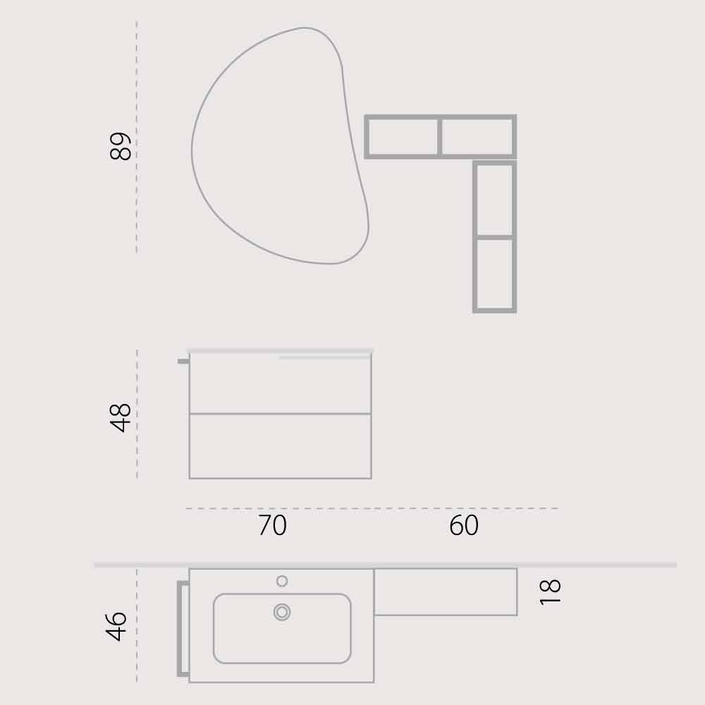 Composição de banheiro suspensa moderna feita na Itália, Trieste